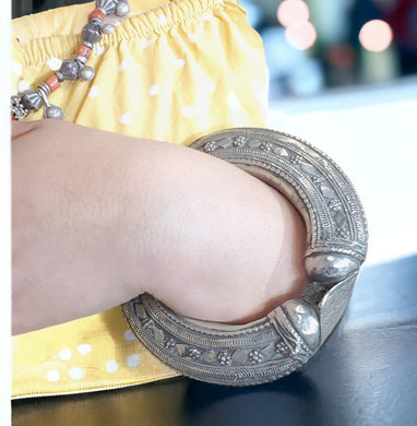Vintage Silver Bedouin Bangle: Yemen Ethnic Tribal Jewelry