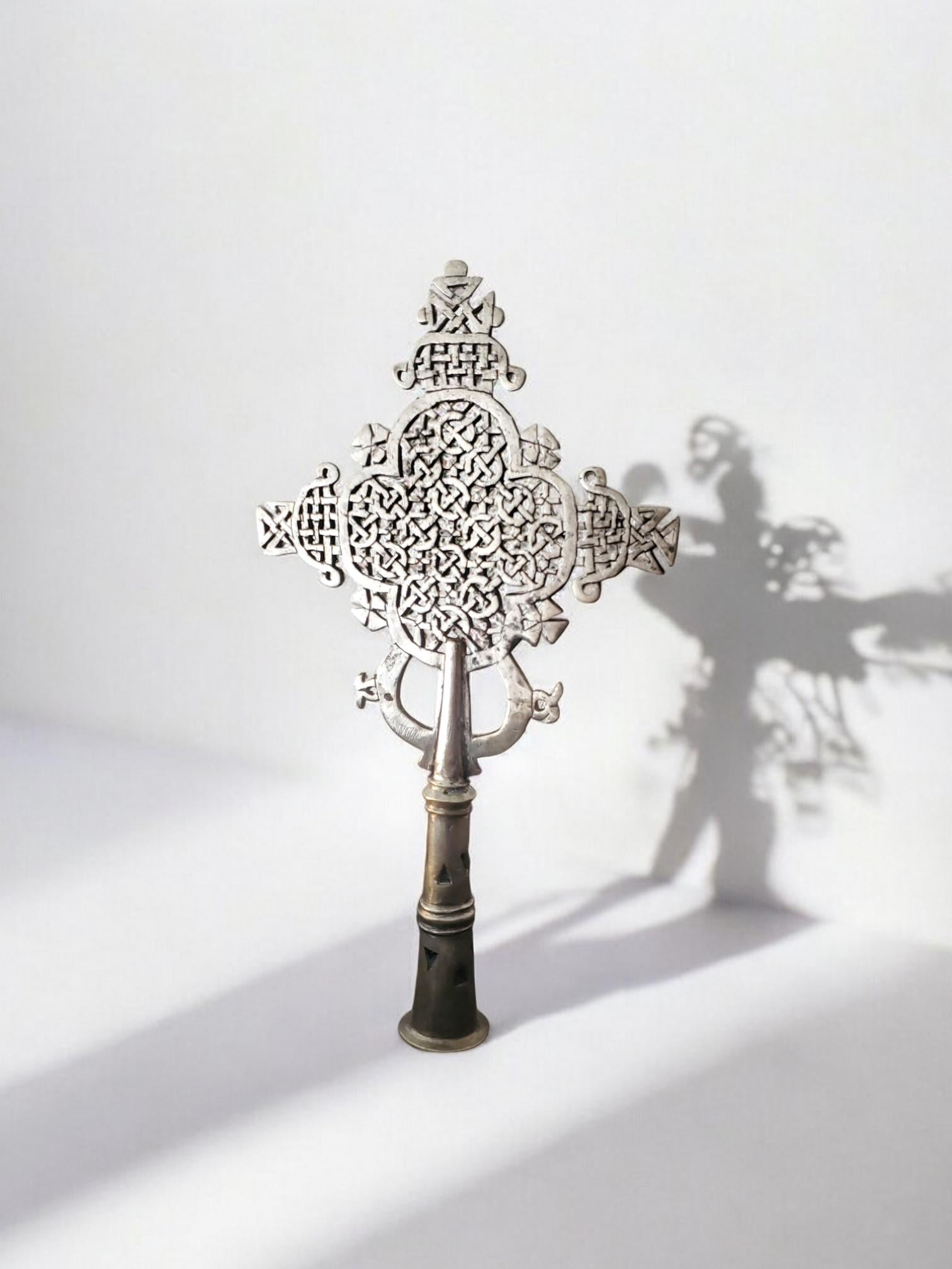 as a symbol of their faith, and it symbolizes Christ, His sacrifice, and the eternal love of God, Ethiopian Orthodox church from the earliest days of Christianity in Ethiopia. There are three basic types of crosses used by the Ethiopian Orthodox Church. These are professional, hand, and pendant crosses. The history of pendant crosses in Ethiopia goes back several centuries when wood crosses were given at the time of one‘s baptism and hereafter worn as a symbol of faith.