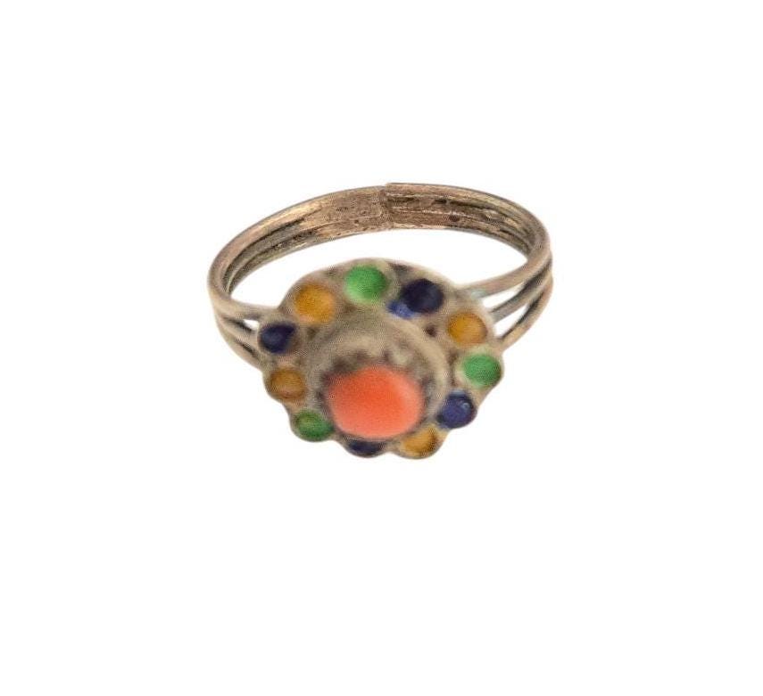 Moroccan Talismanic Berber Silver Enamel Coral Ring size 5 This is a classic old design from the Berber their craftsmanship, Talismanic Ring Engraved to Increase Power and Authority