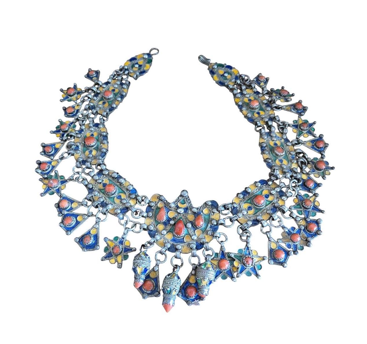 Outstanding Antique Original 1930 Old Algerian. HUGE Kabyle natural Coral Beads Necklace natural Coral Old Silver Beads Necklace handmade really old from Algeria. in old natural Coral first half of XX century The total length of the necklace is Good condition with usual dents (see pictures). Collectible. This piece here, it‘s an original piece. made out of natural Coral with the original pieces attached never been replaced with any other pieces. It was owned by a friend. of mine, that her mother. bought an 1959 and she kept it in her collection and tell I received it from her. So I know 100 percent. That‘s original piece. This was a very rare found The listing is just for the necklace. I do have bracelets and the pen that. were from the same collection.