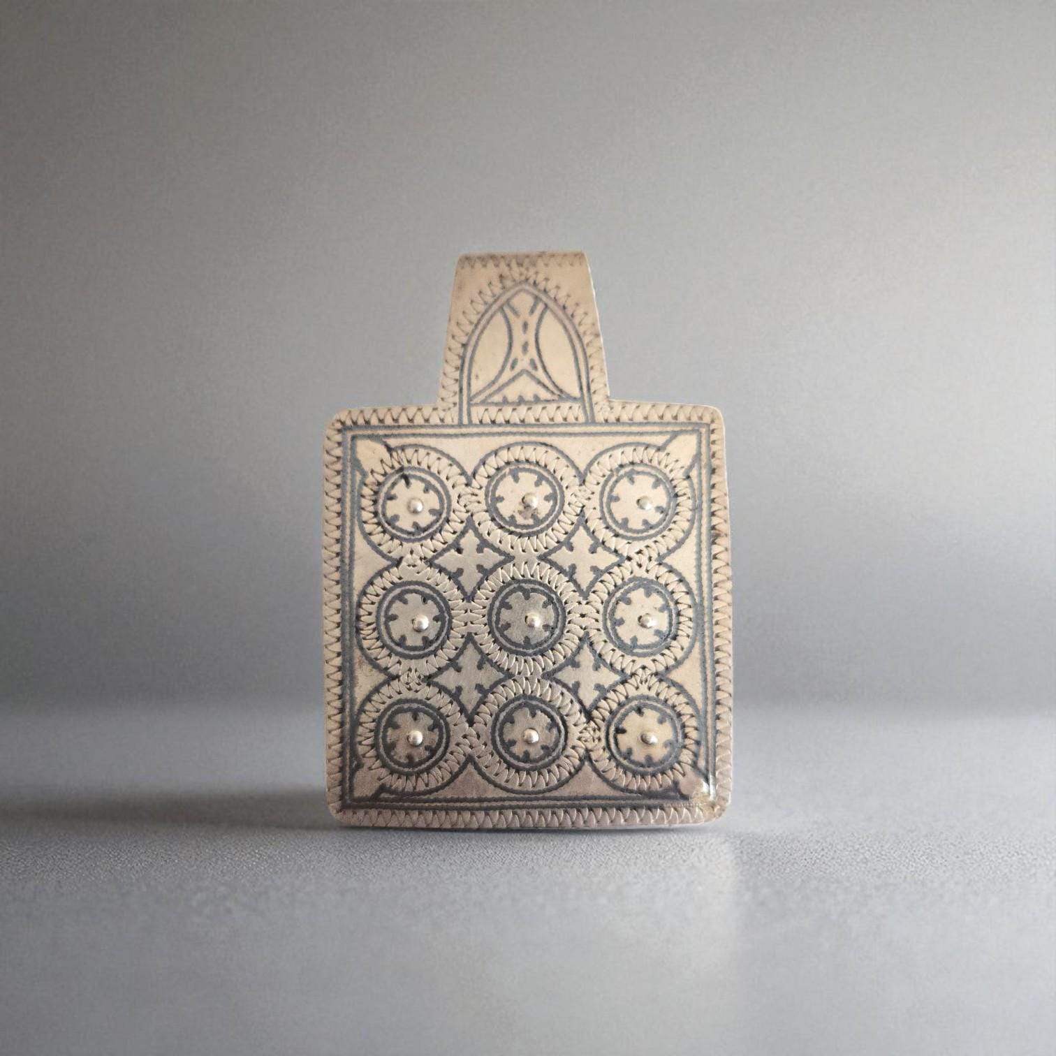 Antique Berber Silver Enamel Pendant: Moroccan Amulet Jewelry