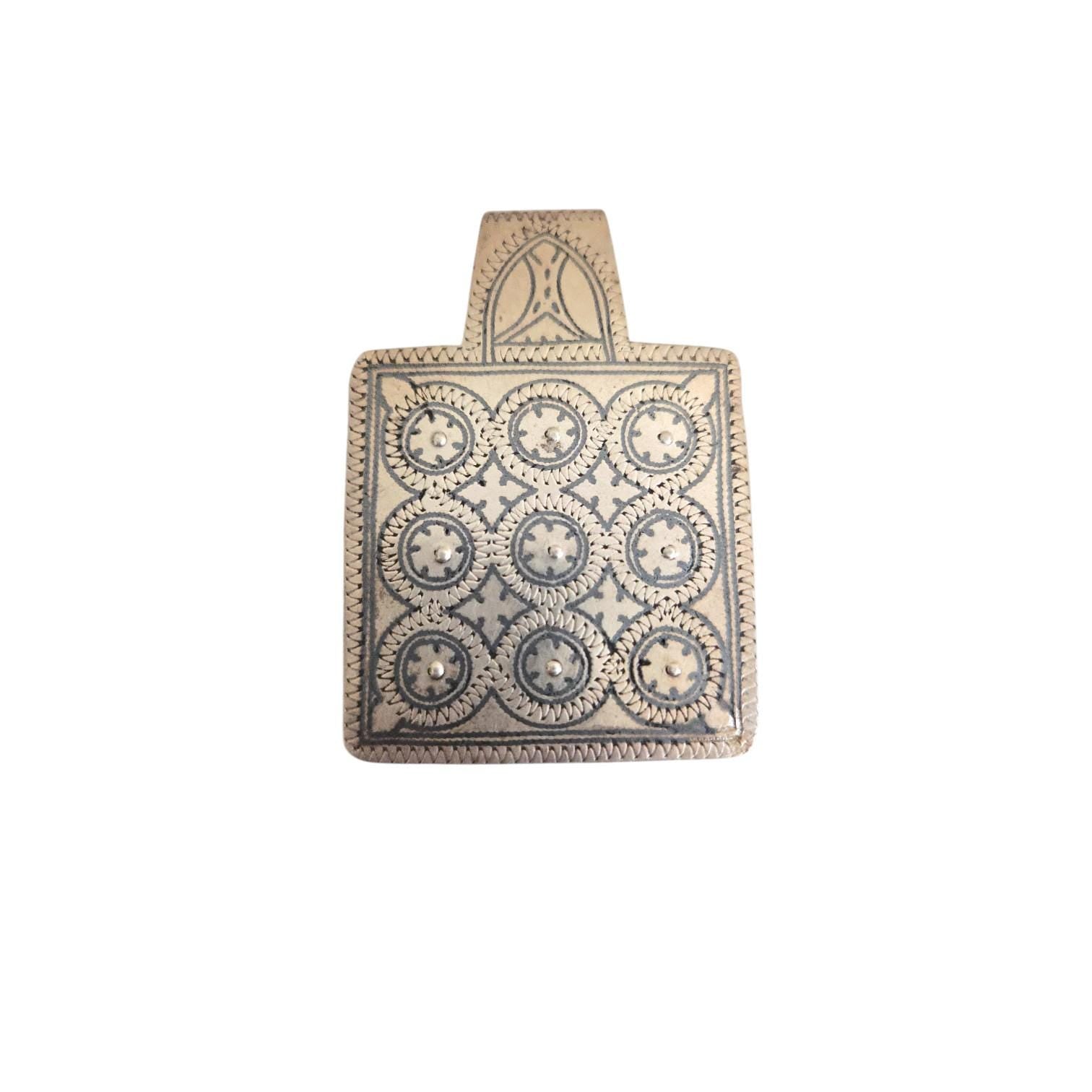 Old original Moroccan Silver Enamel Berber Pendant Bedouin from Morocco original tribal silver pendant features detailed wire-work a black enamel a high grade alloy of silver with wonderful wear patterns and patina. please refer to the photos It is in great condition commensurate with age and use If you have any questions please feel free to email me and I will get back to you asap.This pendant is from the beginning of the 20th Century Measurements approximately Length of Pendant -(3" x 3 long ) weight : abut 38gr Collectible 925 Silver great condition