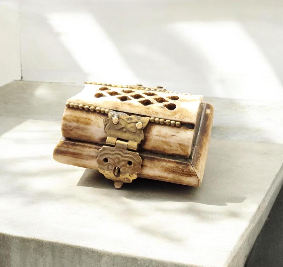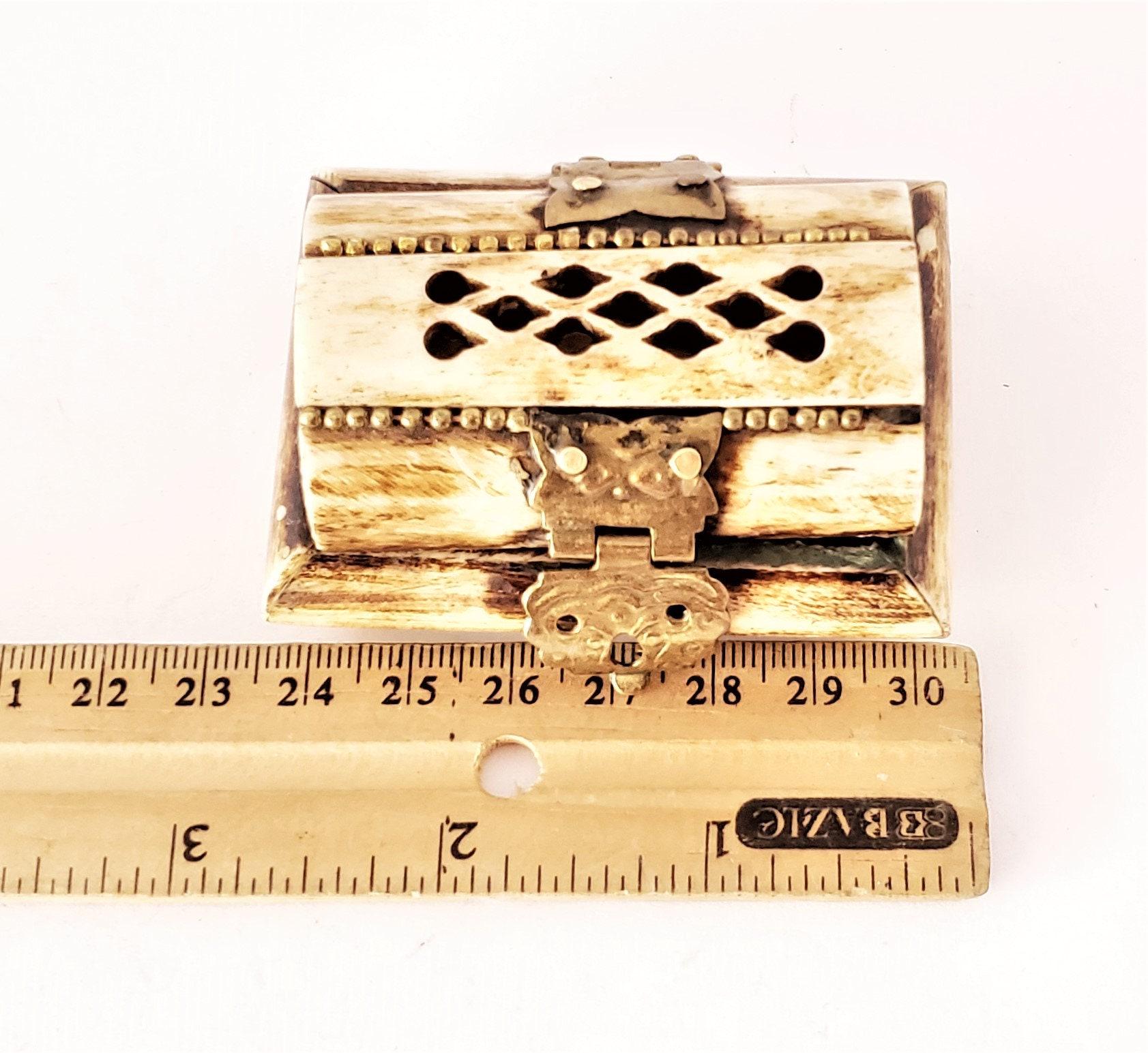 Measures 3‘‘ inches long by 2‘‘.5 x 2‘‘.5 inches wide Good condition Collectible Ethiopian Icons are - as a particular feature in the icon painting - manufactured by using the old traditions until the present day, very rare box Icon med from bones very old 1800s Ethiopian Icons show a more popular character. The paintings on them have mostly a powerful range of colors.