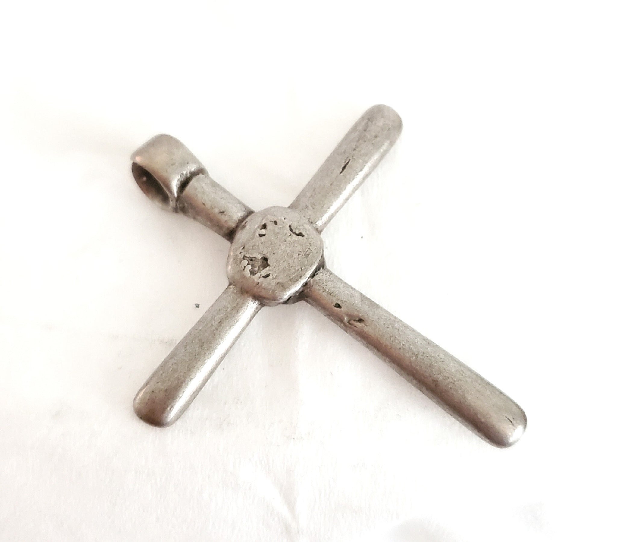 Antique Ethiopian Silver Cross Pendant: Boho Amulet Jewelry