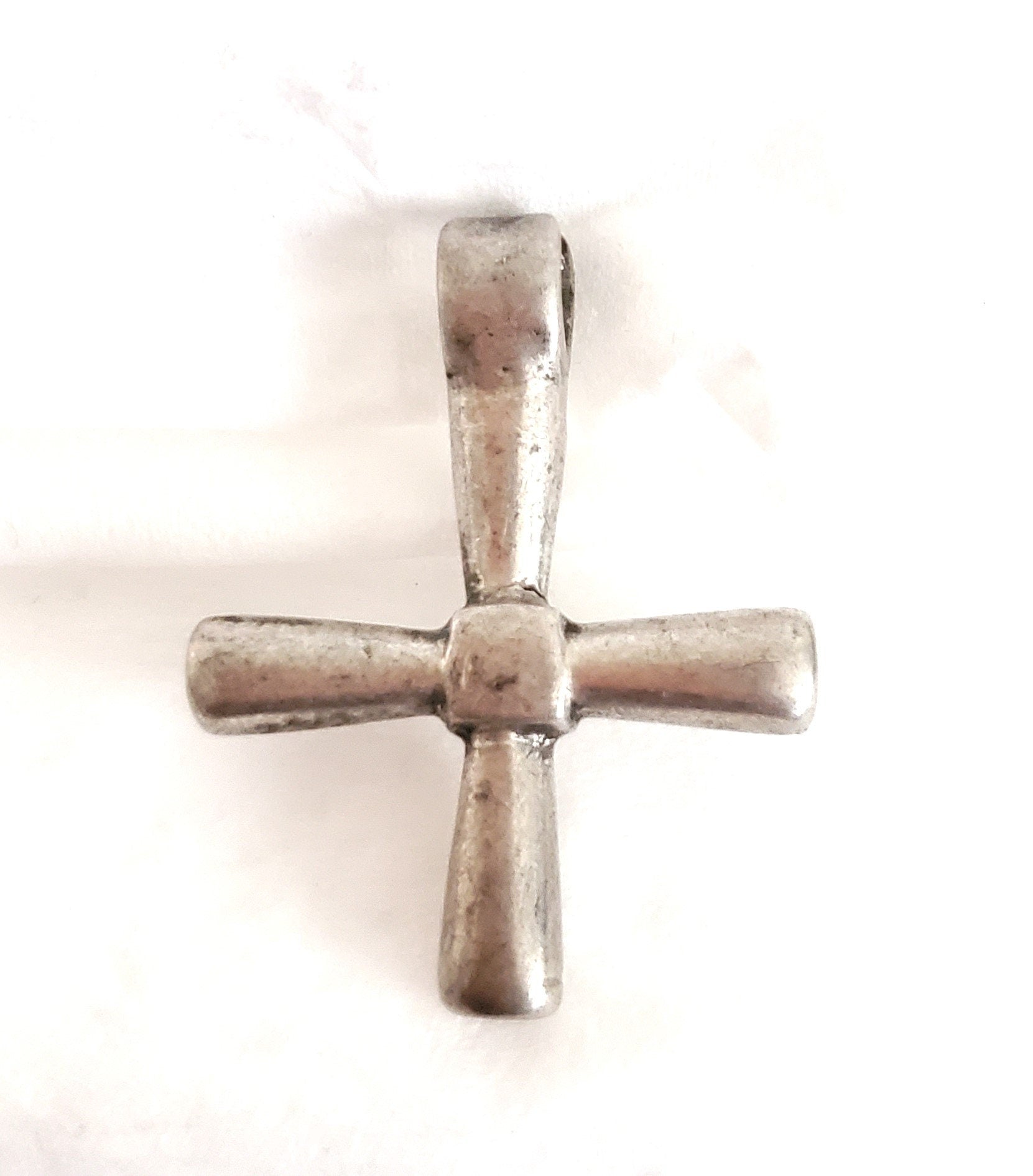Antique Ethiopian Silver Cross Pendant: Boho Amulet Jewelry