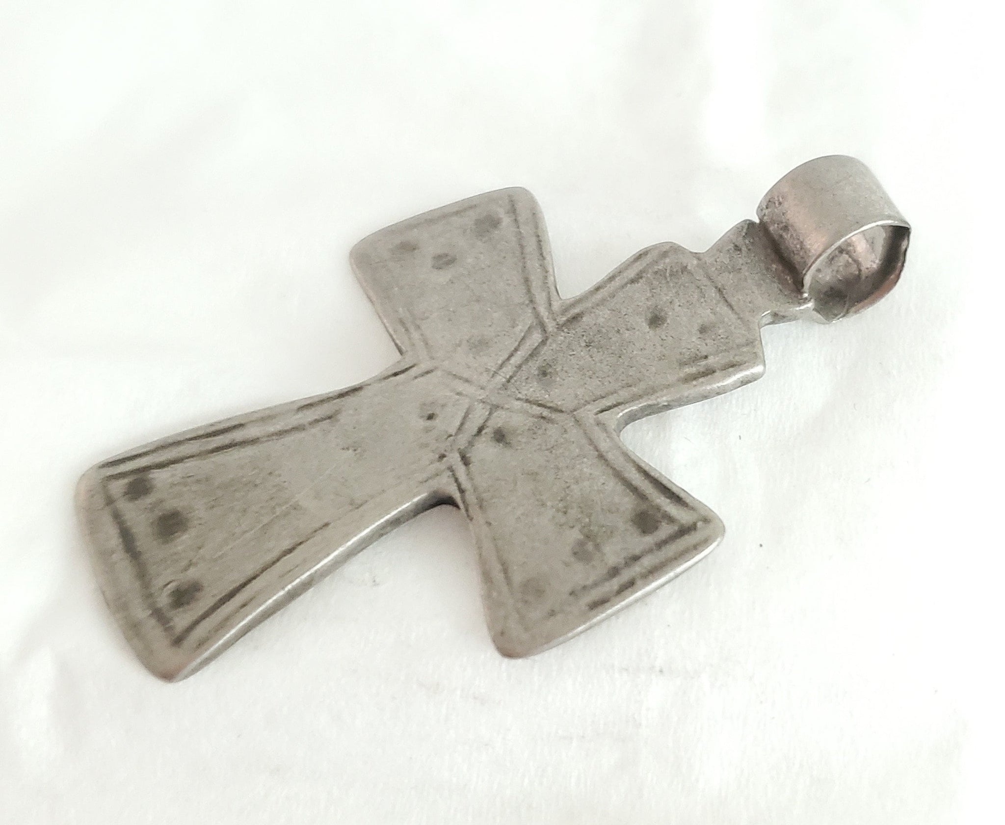 Antique Ethiopian Silver Cross Pendant: Boho Amulet Jewelry