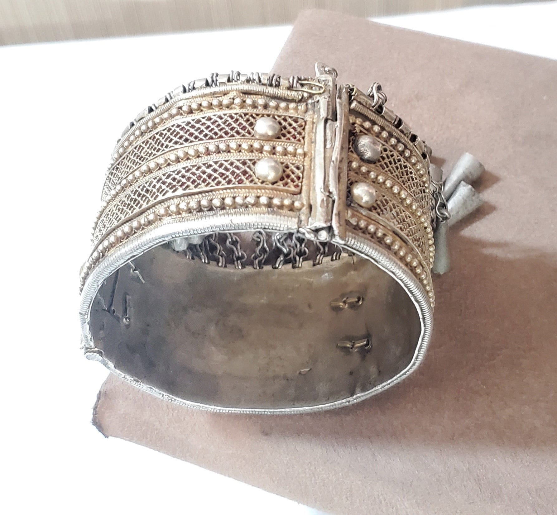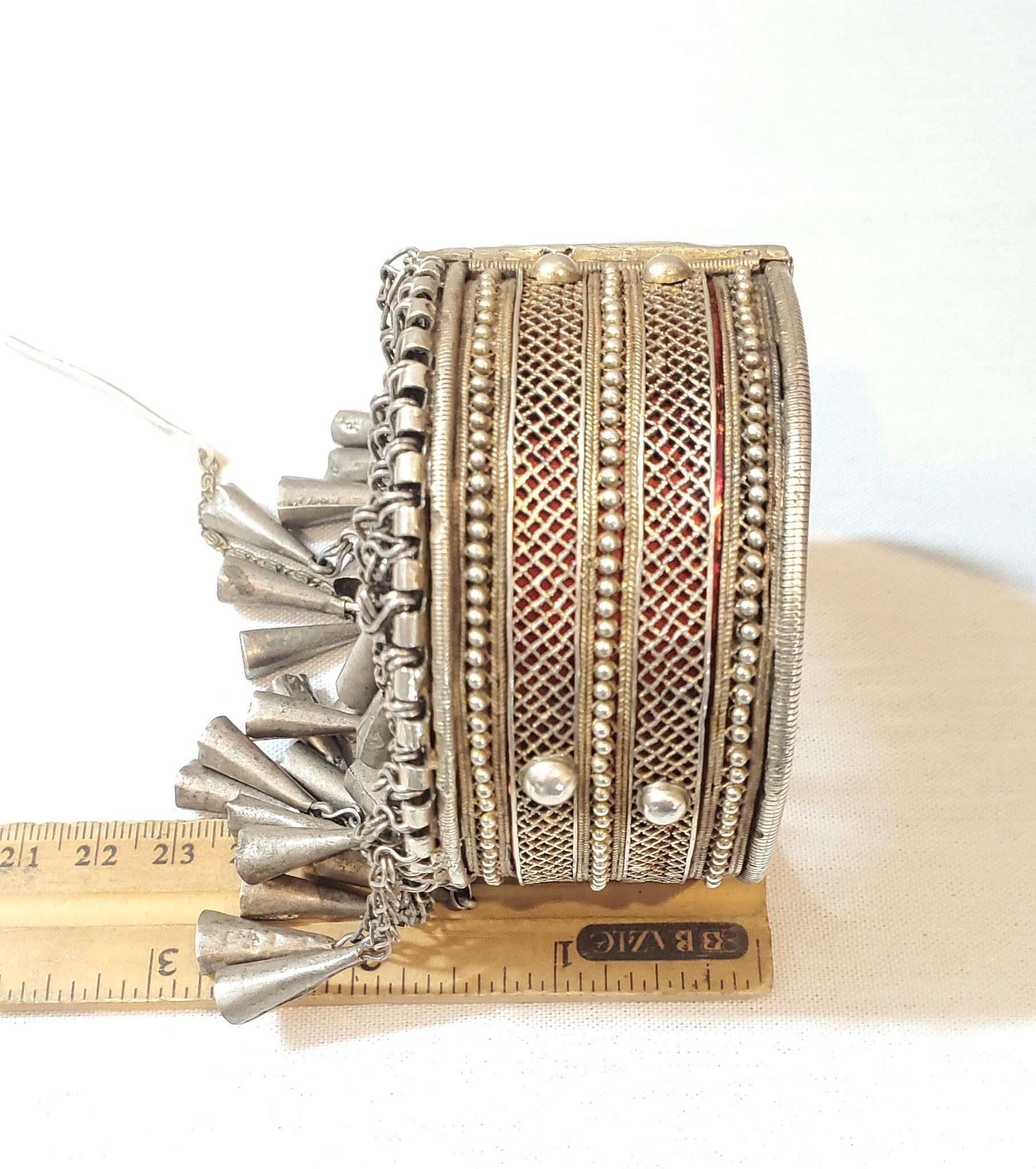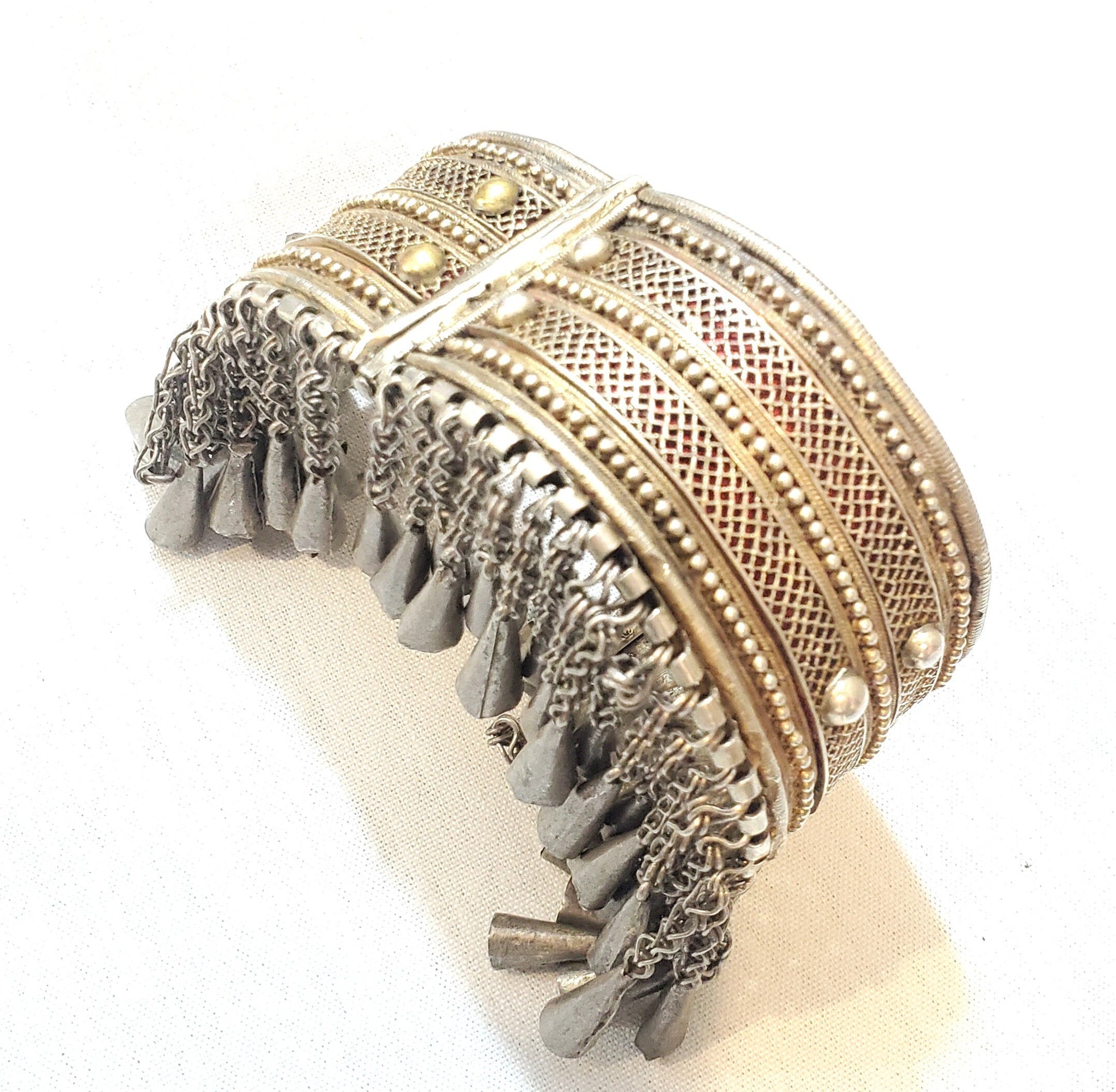 Antique Stunning, single Ethiopian Cuff made of 100 year old coin silver. well handmade piece, It closes easily and perfectly with pin closure high grade silver done by highly skilled silversmith really looks much better than the pictures is a heavy silver bracelet Beautifully detailed and decorated made of good silver Wonderful to wear or highly collectable. If you need more detailed photos please feel free to ask .Weight:200 Grams. Measures approximately Height: 2"Circumference: 8".5 Inner diameter: 3" with hinge and pin closure 2".5 long Age:From the first half of the 20th Century. The bracelet is in its original condition except for the aging and the wear, that gave the bracelet this wonderful patina. This beautiful piece of silver was created for a Ethiopian woman before the 1940s rare This piece can be purchased on a lay-away plan that works for you Contact me for more information.Thanks for your support and feel free to message with any questions! other shop ....africanbazaarus.com