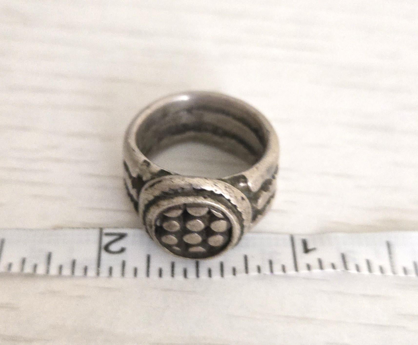 Antique Silver Ethiopian Ring, tribal jewelry, unique high-silver content piece from Ethiopia. Ring size 5, dimensions 22mm x 22mm, weight: 18 gr, in good condition (refer to pictures). Although unmarked, it has been acid tested and confirmed to be 925 silver. A collectible Ethiopian wedding ring, among other items available at africanbazaarus.com.