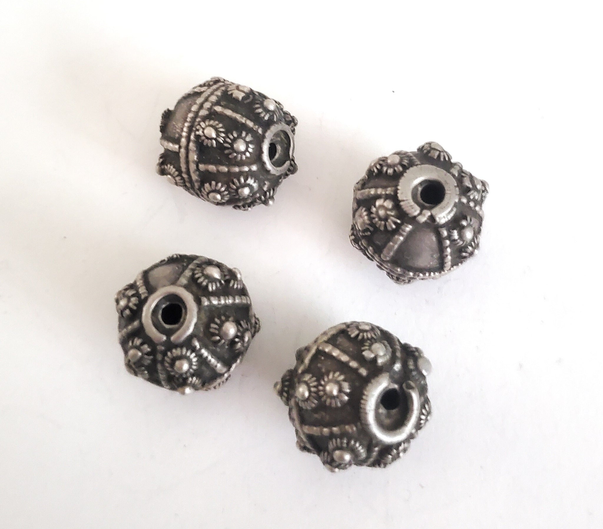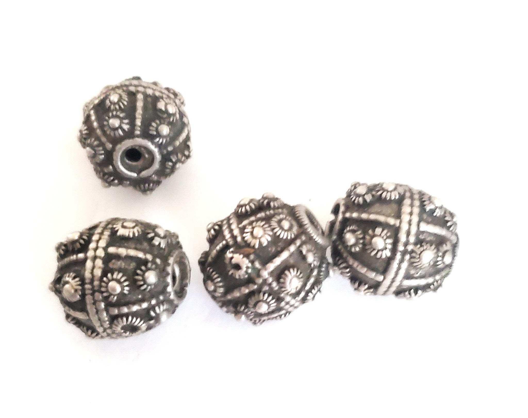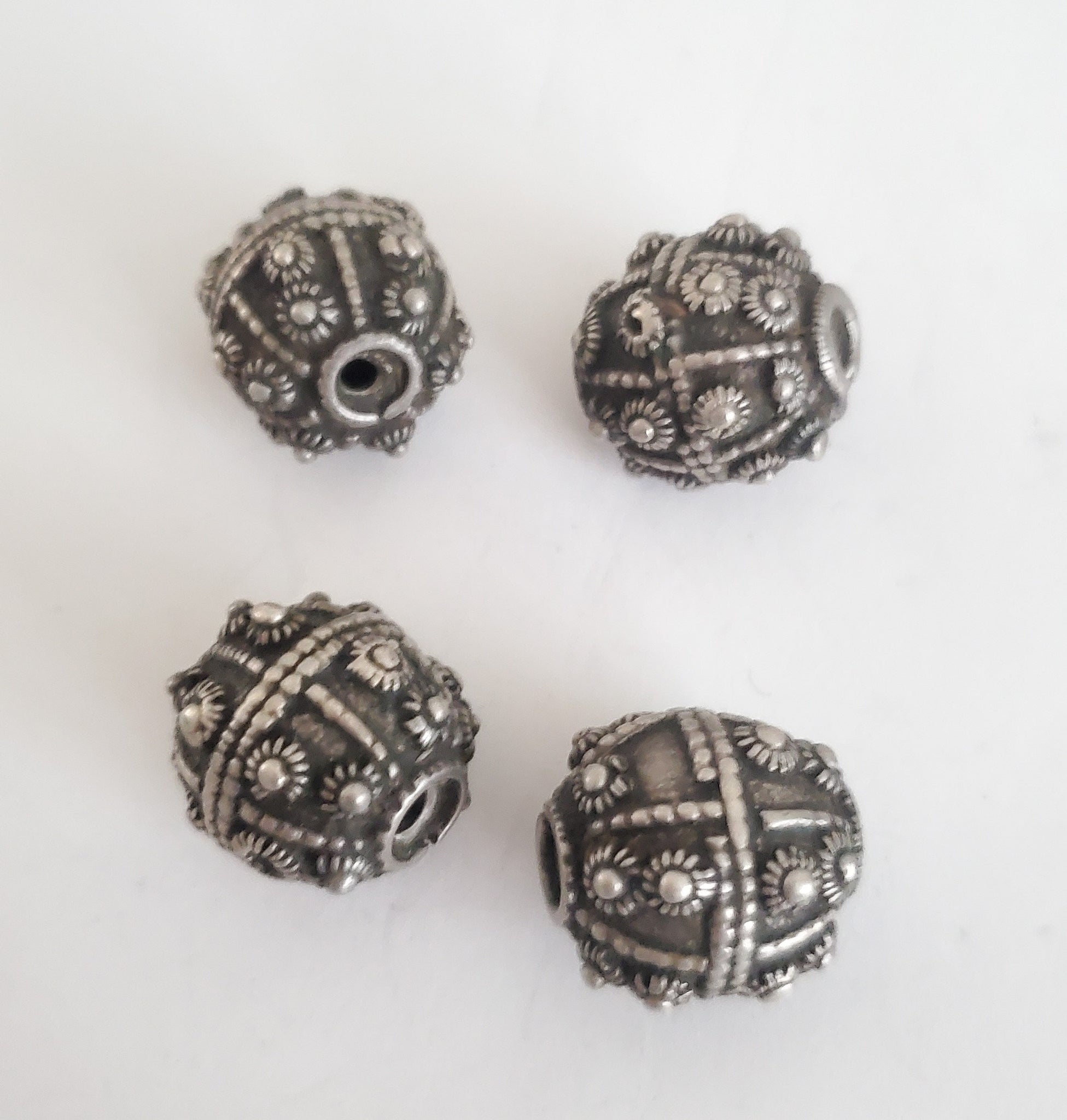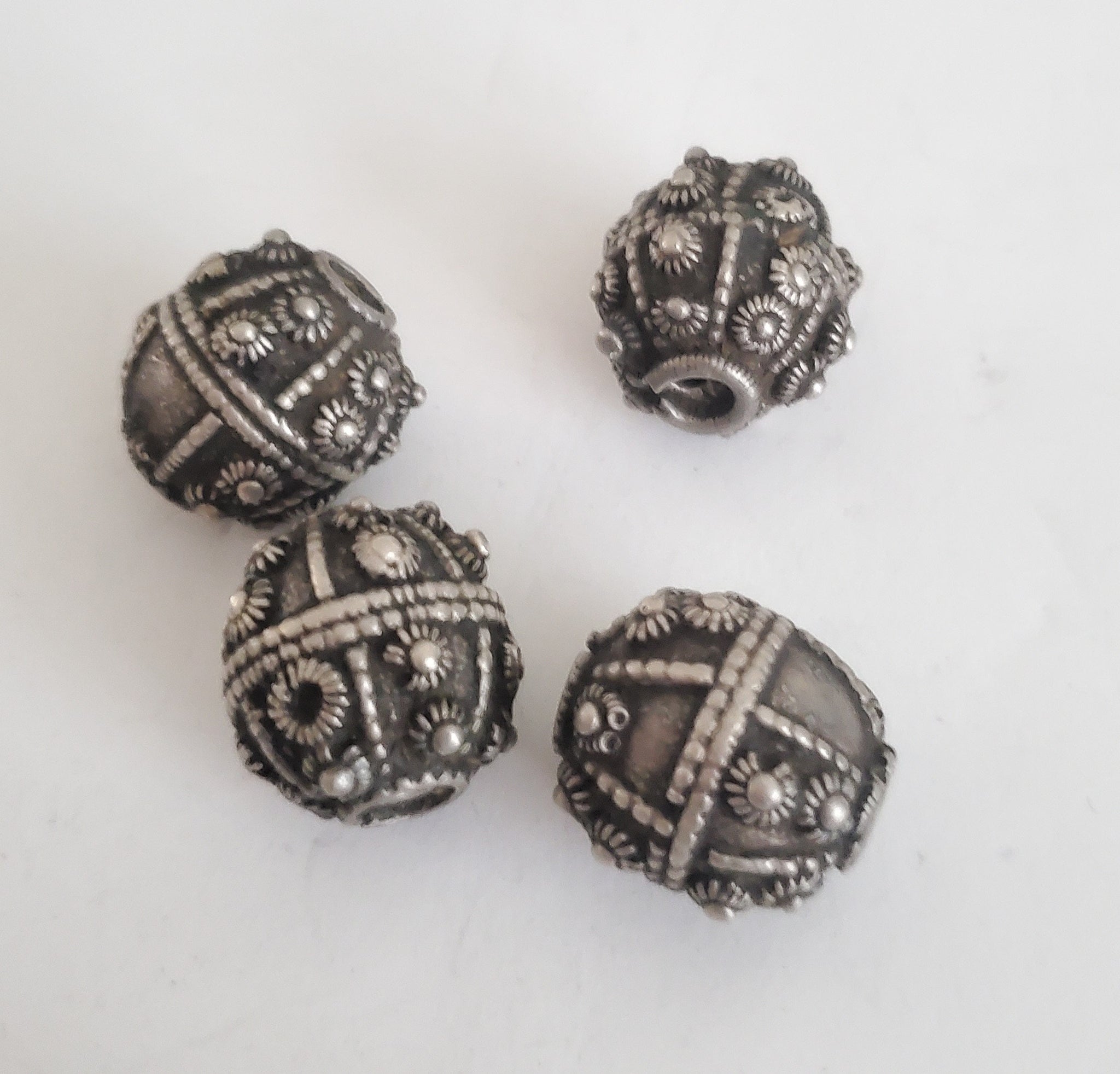 Antique Silver Star Burst Globe Bead: Yemen Bedouin Tribal Jewelry Supply