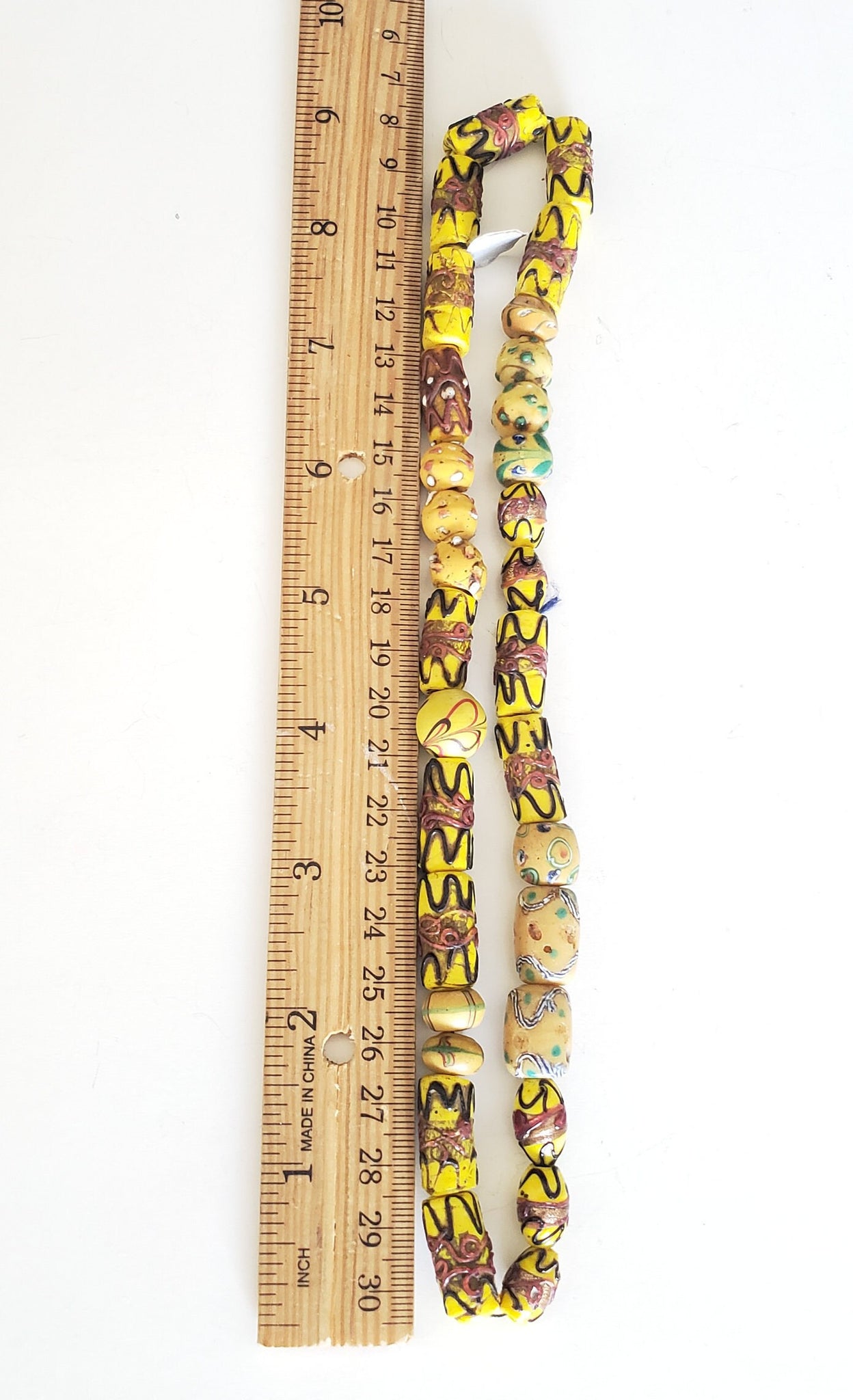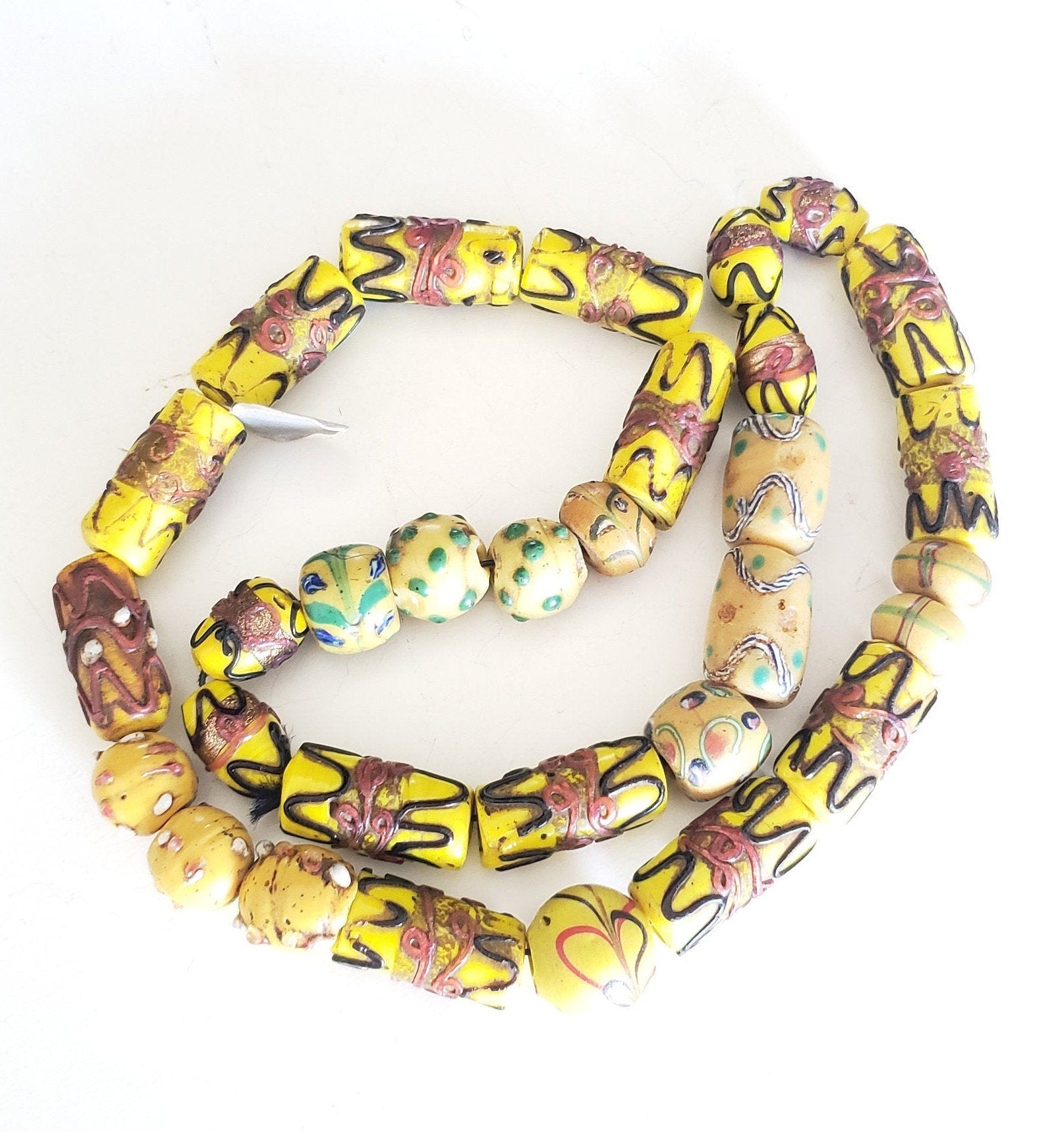 Antique Beautiful Quality Vintage STRAND Venetian Yellow Pineapple Mixed Glass Old European Wedding Cake Venetian A nice mix of antique Venetian glass beds from the African Trade Beads 18‘‘ Inch features
