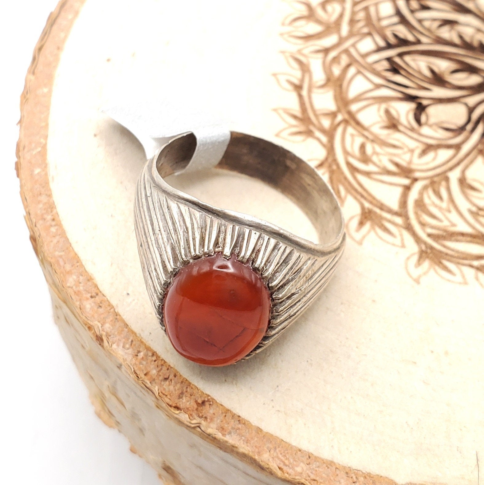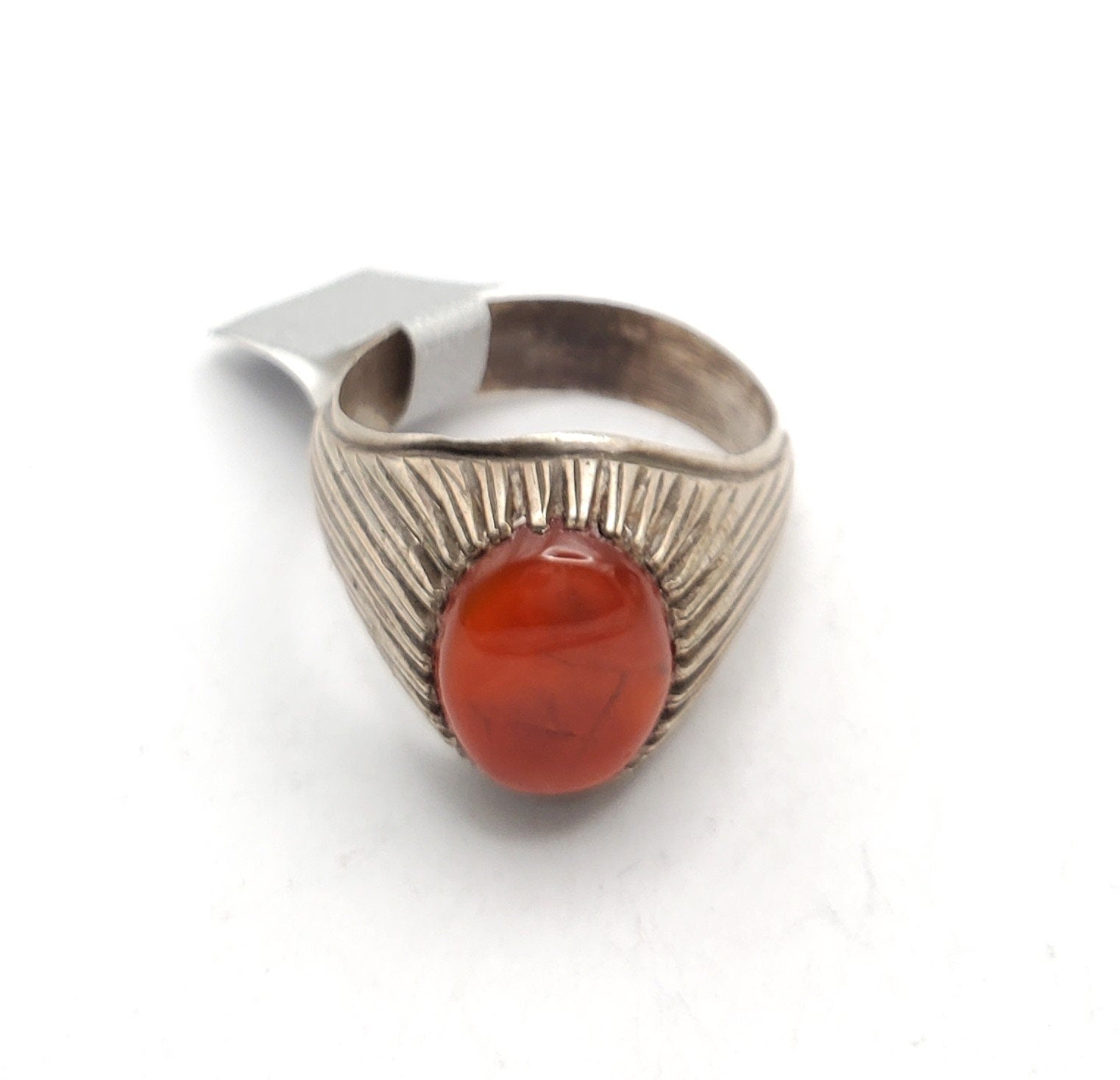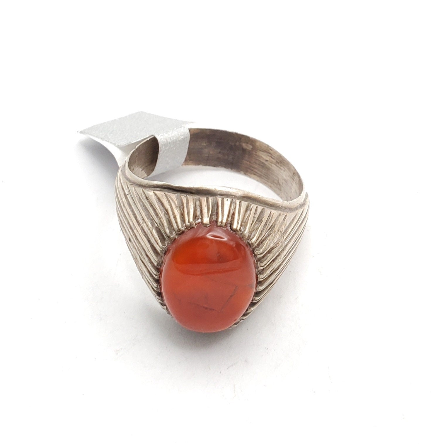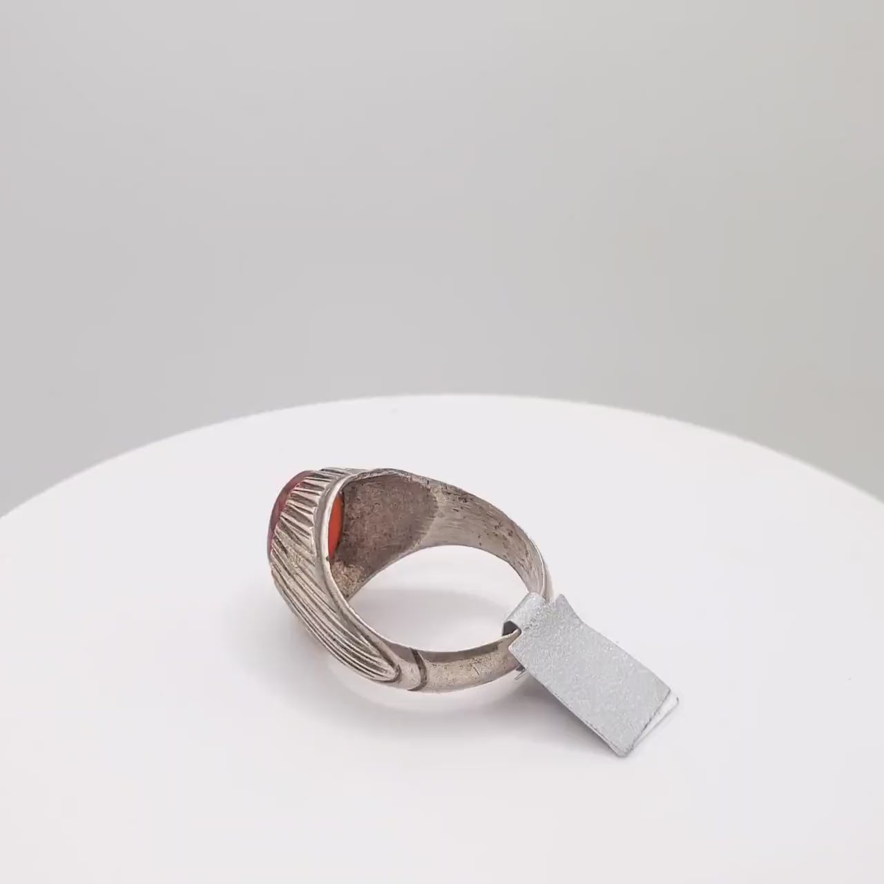 old Yemeni Ancient Carnelian silver ring from Yemen from the 1965 century The decoration is made using vintage Silver and Ancient Carnelian The Bedihi´s were responsible for the best quality granulation work like this ring, and also all kind of berry Yemeni beads Unique Yemeni wedding Ring size 11 .11mm x 11mm Weight:16 gr.Good condition size (see pictures) Collectible It is not marked but acid tested positive for 925 Silver.......africanbazaarus.com