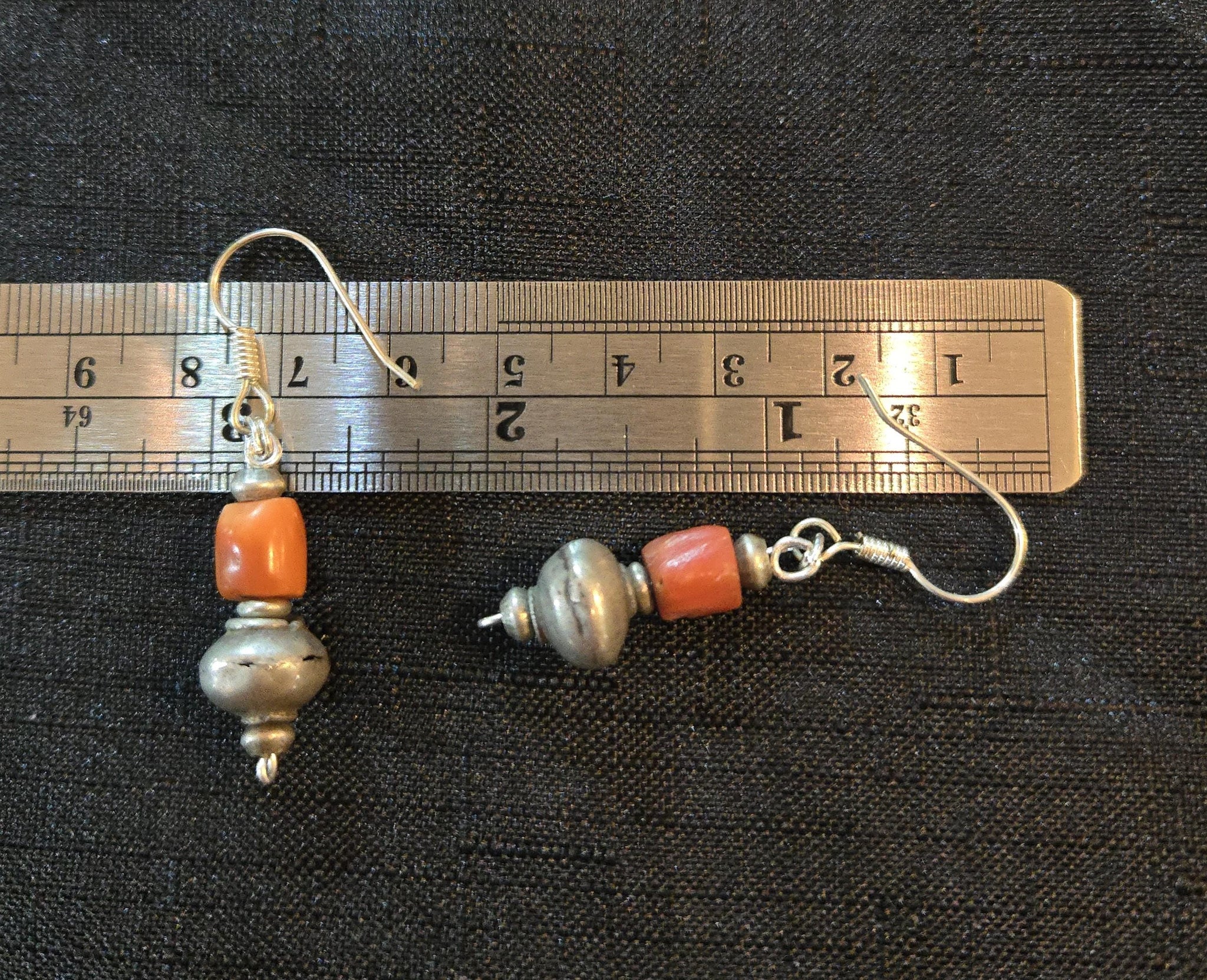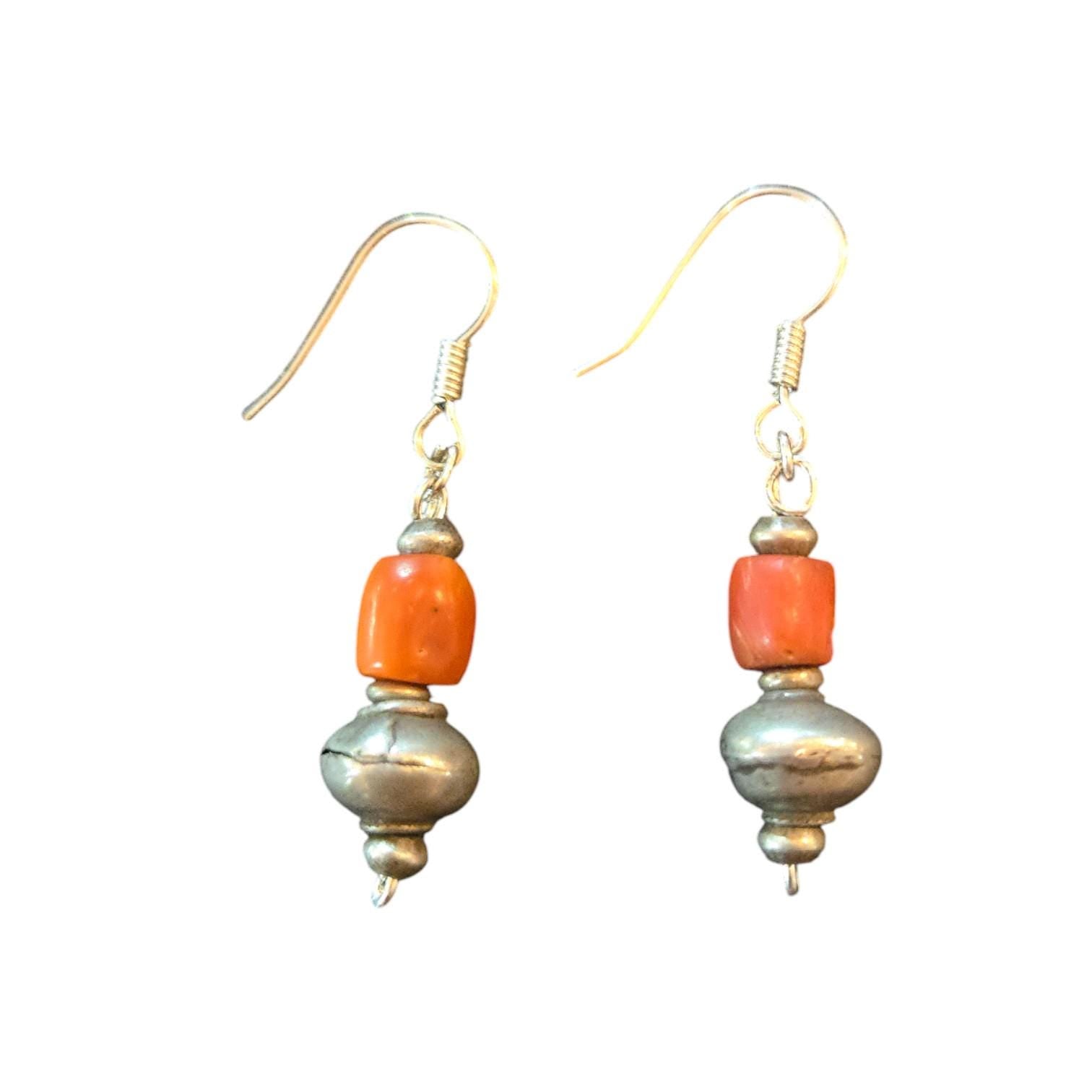 Antique Yemen Bawsani silver coral Earrings with