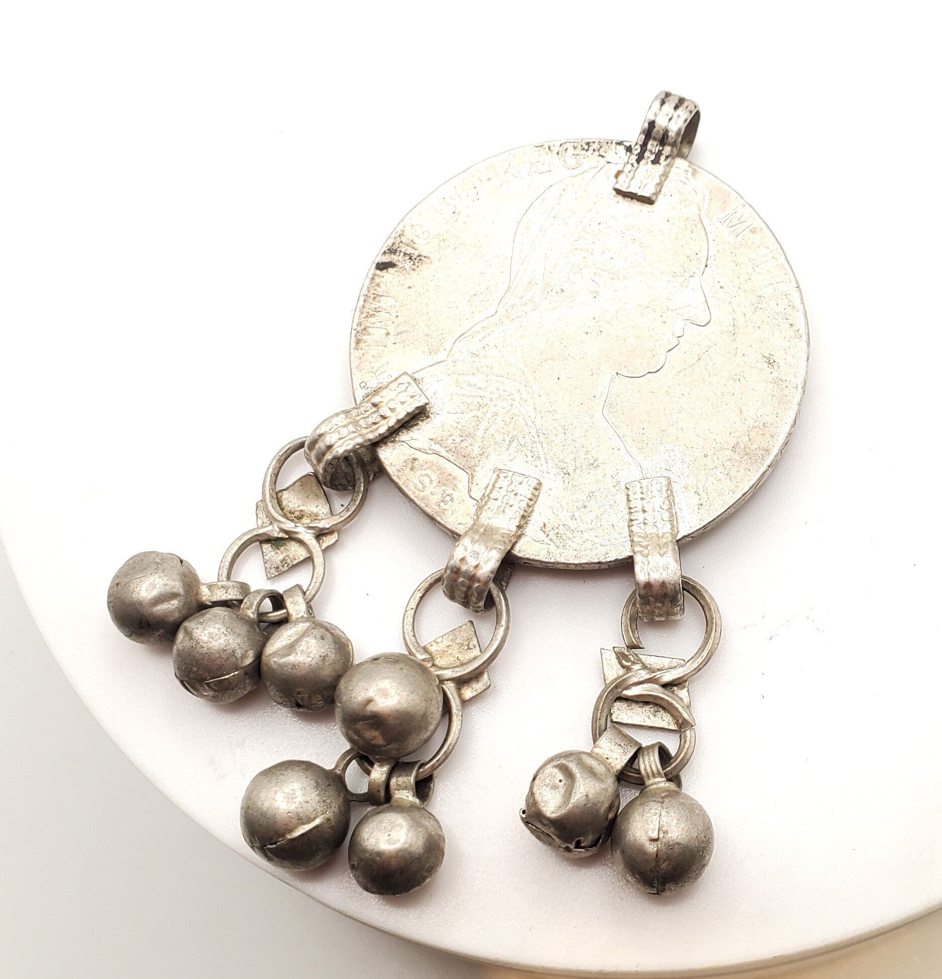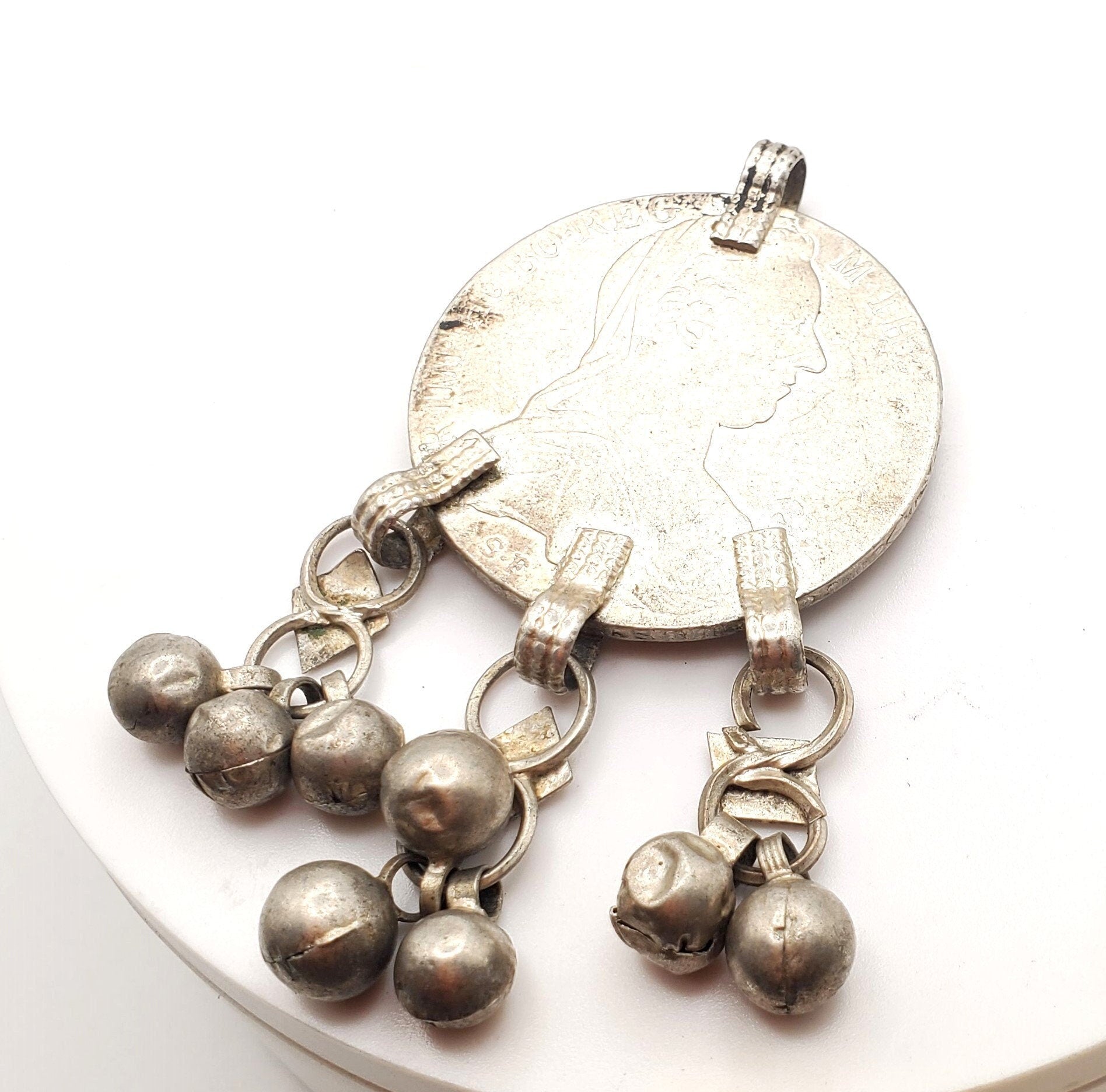 Antique Yemen Silver Maria Theresa Coin Pendant with Dangles