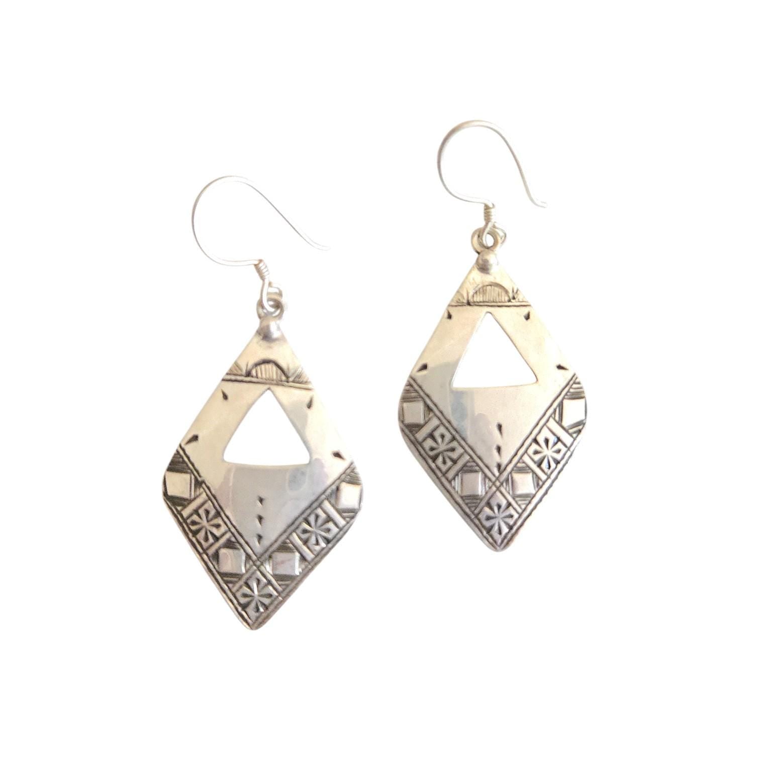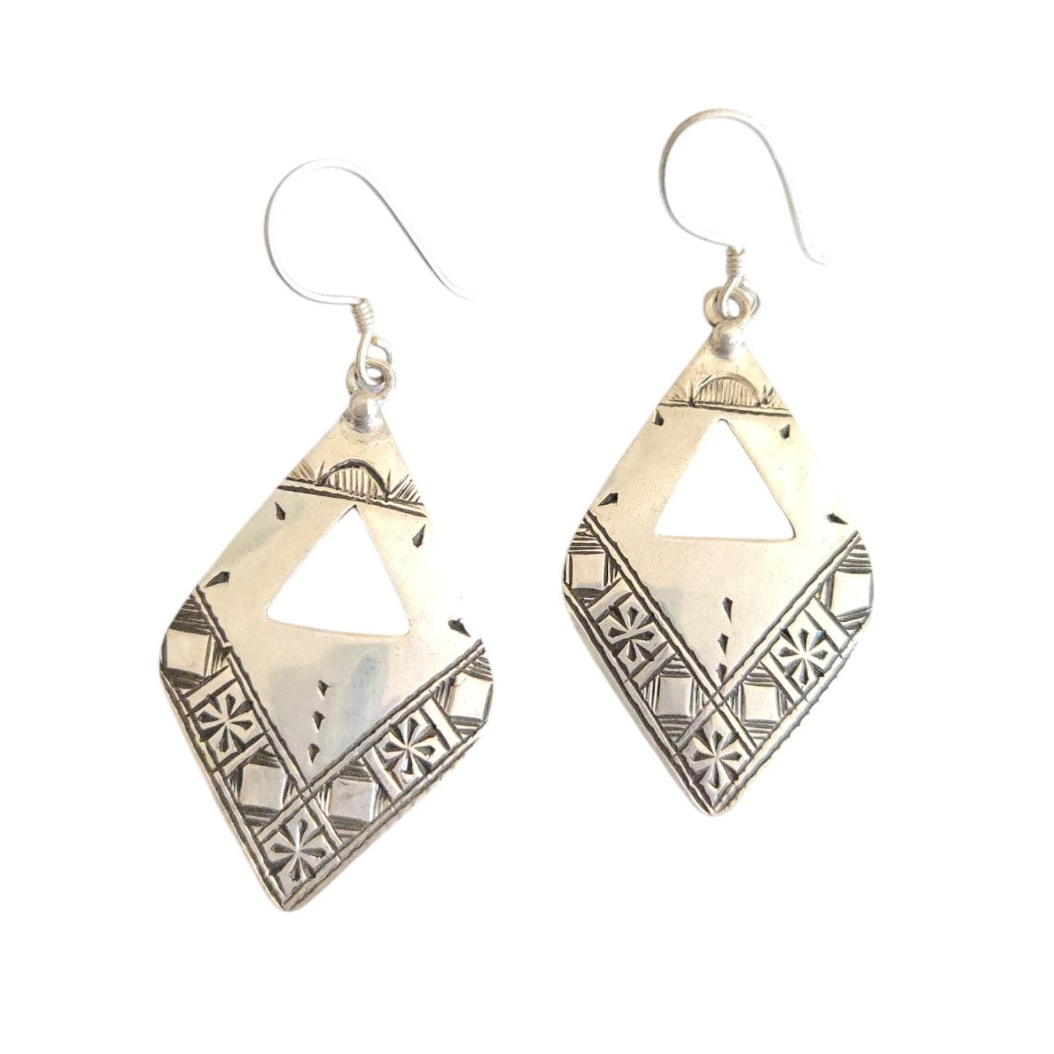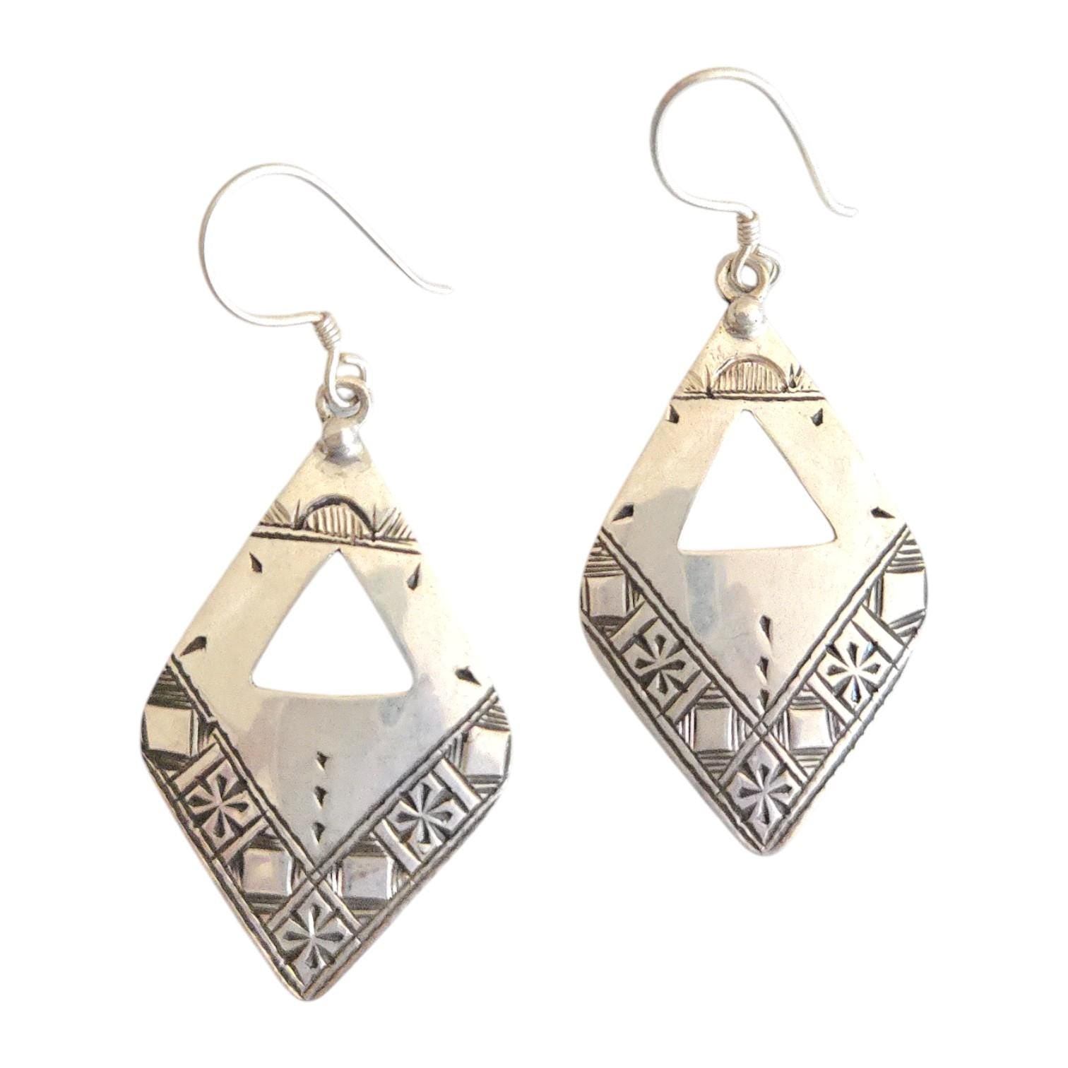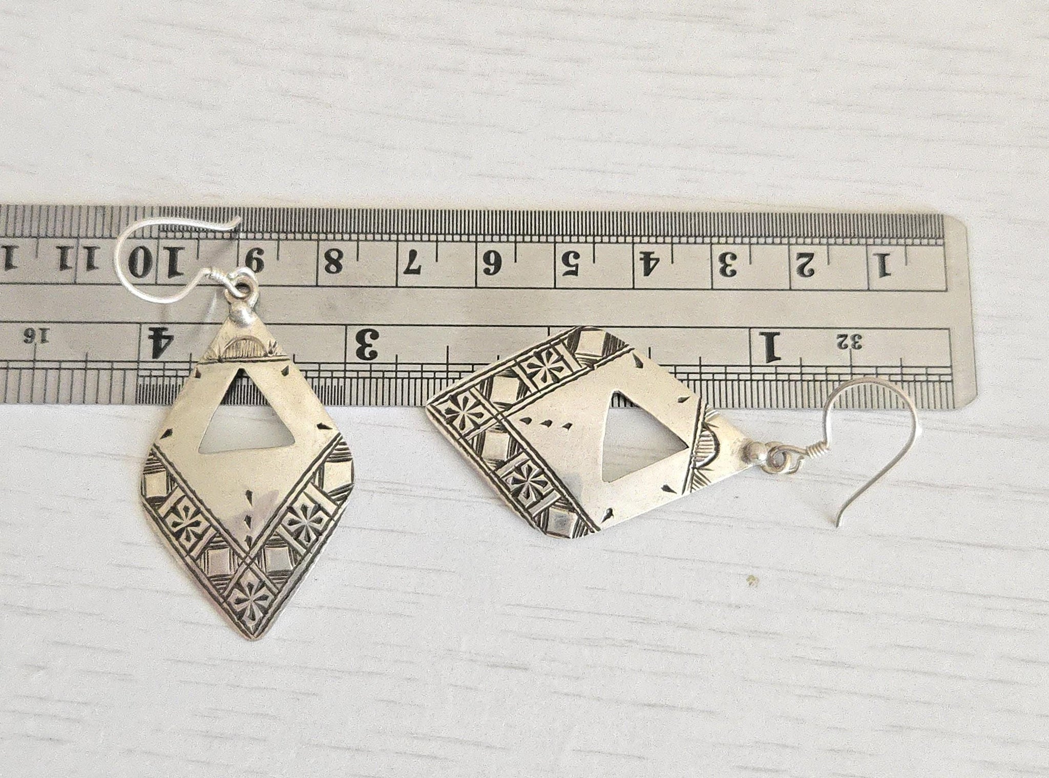 Moroccan Berber Sterling Silver Dangle Filigree Earrings This is a great authentic jewelry from Morocco. Each earring measures just over 2" long and just under 1‘‘ wide./ 12.gr The workmanship is wonderful .These earrings were hand made sterling silver 925 if you have any questions - Feel free to contact me. . Thank you for visiting my shop All my jewelry has been collected over 20 years ago. I will be listing more pieces shortly as I am constantly always working on posting more. piece to add to the collection .I ship all over the world and price includes a tracking service........africanbazaarus.com