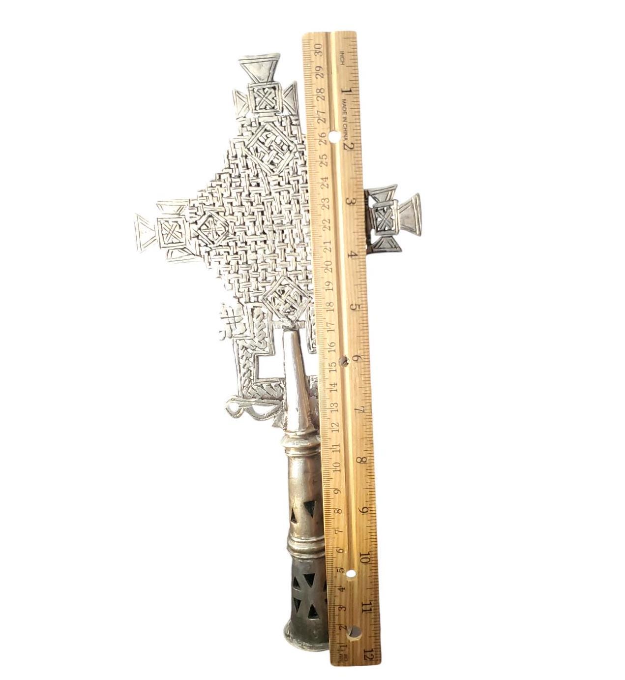 Ethiopian Orthodox Processional Cross: Handmade Nickel Coptic Decor