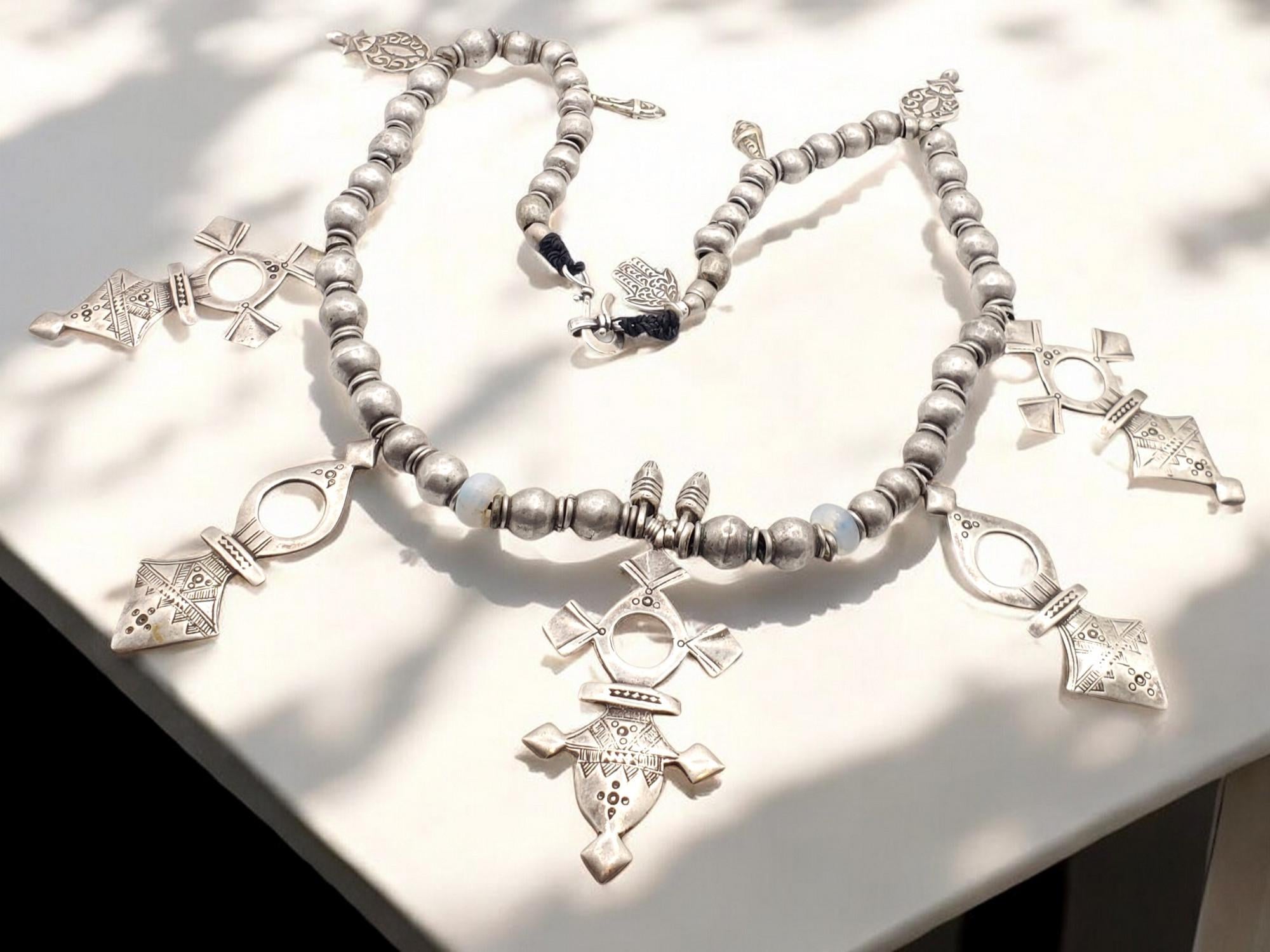 Handmade Sterling Silver Tuareg Necklace: Berber Jewelry, 1960s Beads