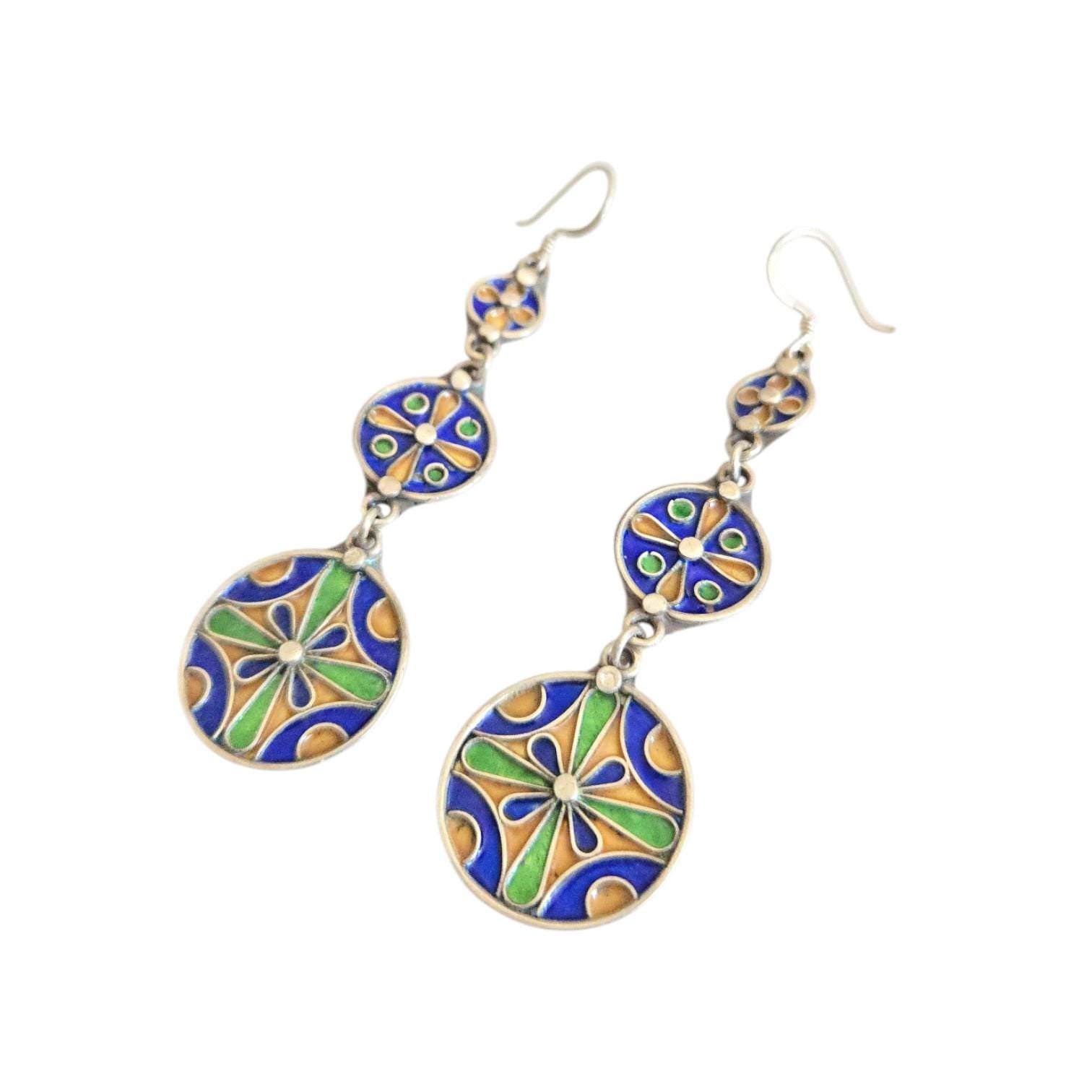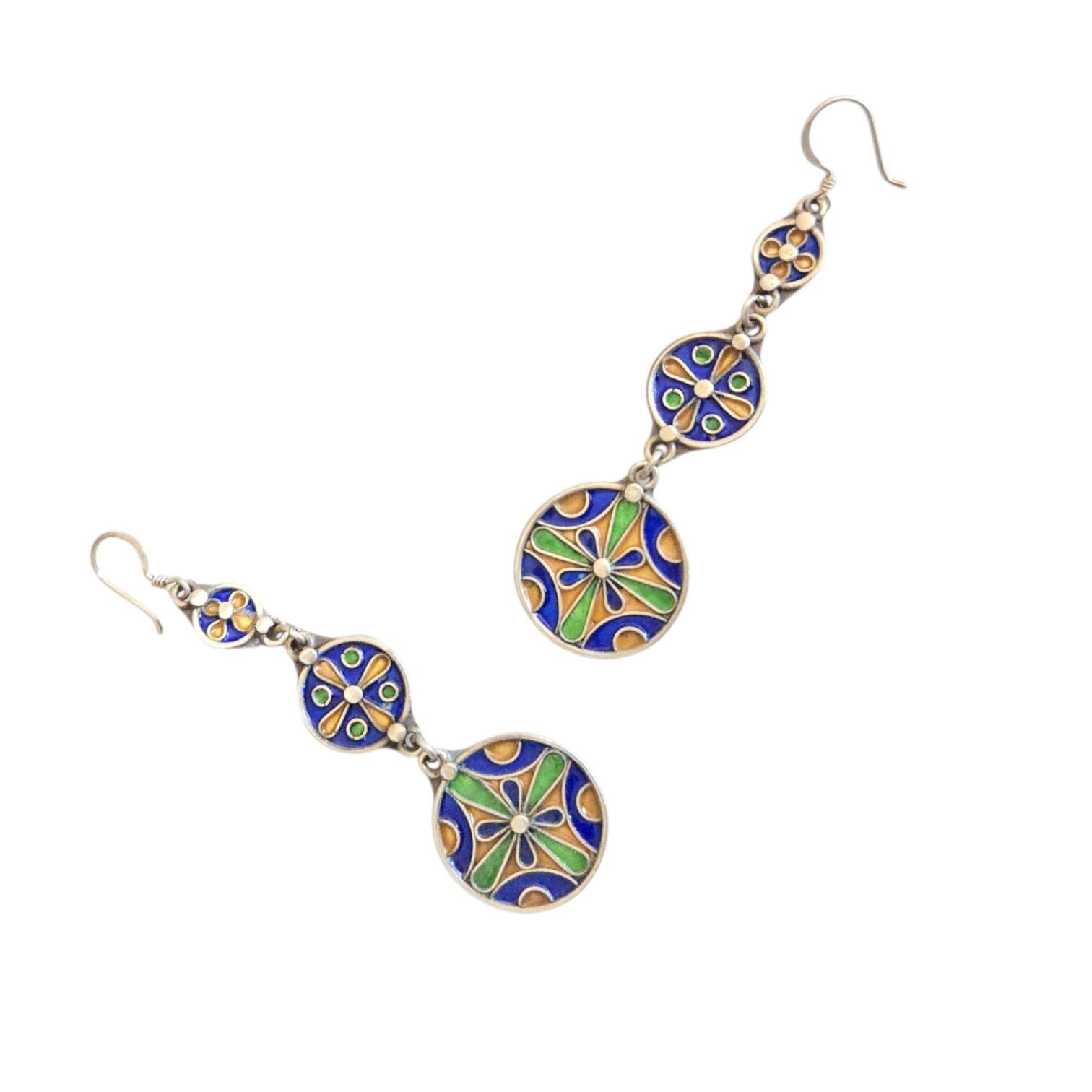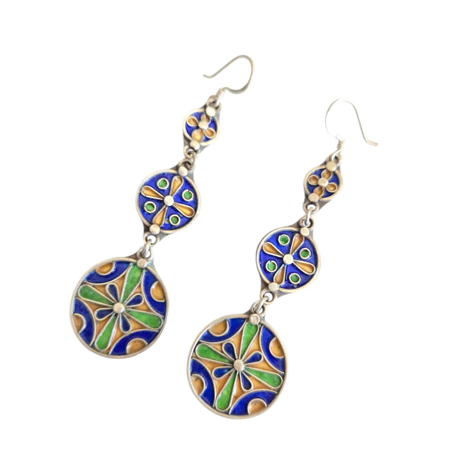 Moroccan Berber Enamel Sterling Silver Dangle Earrings