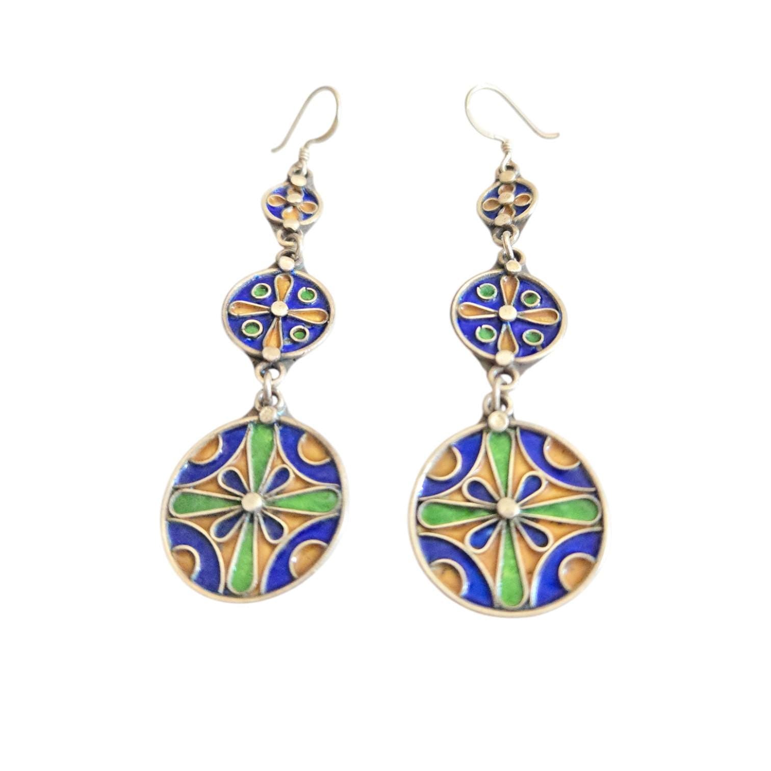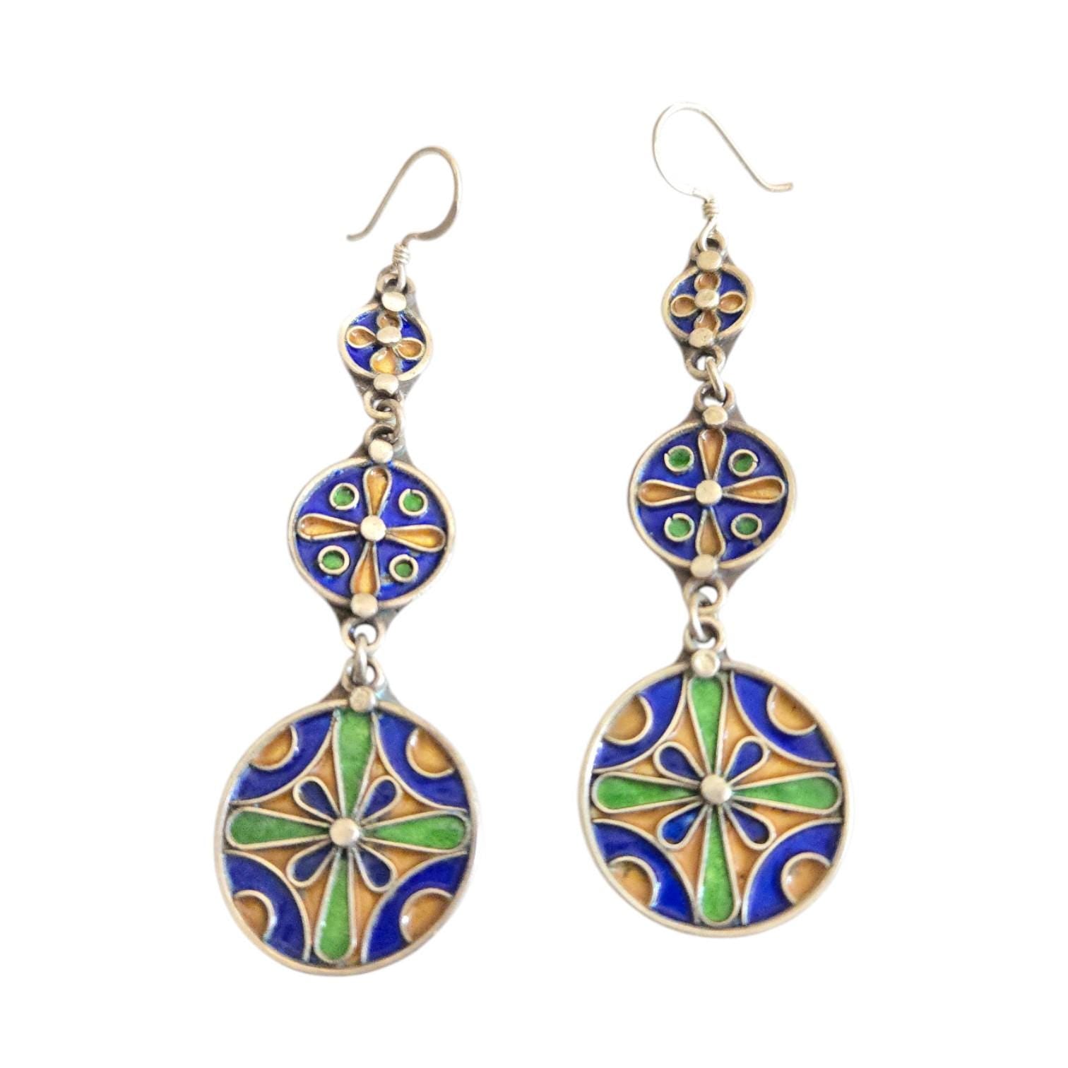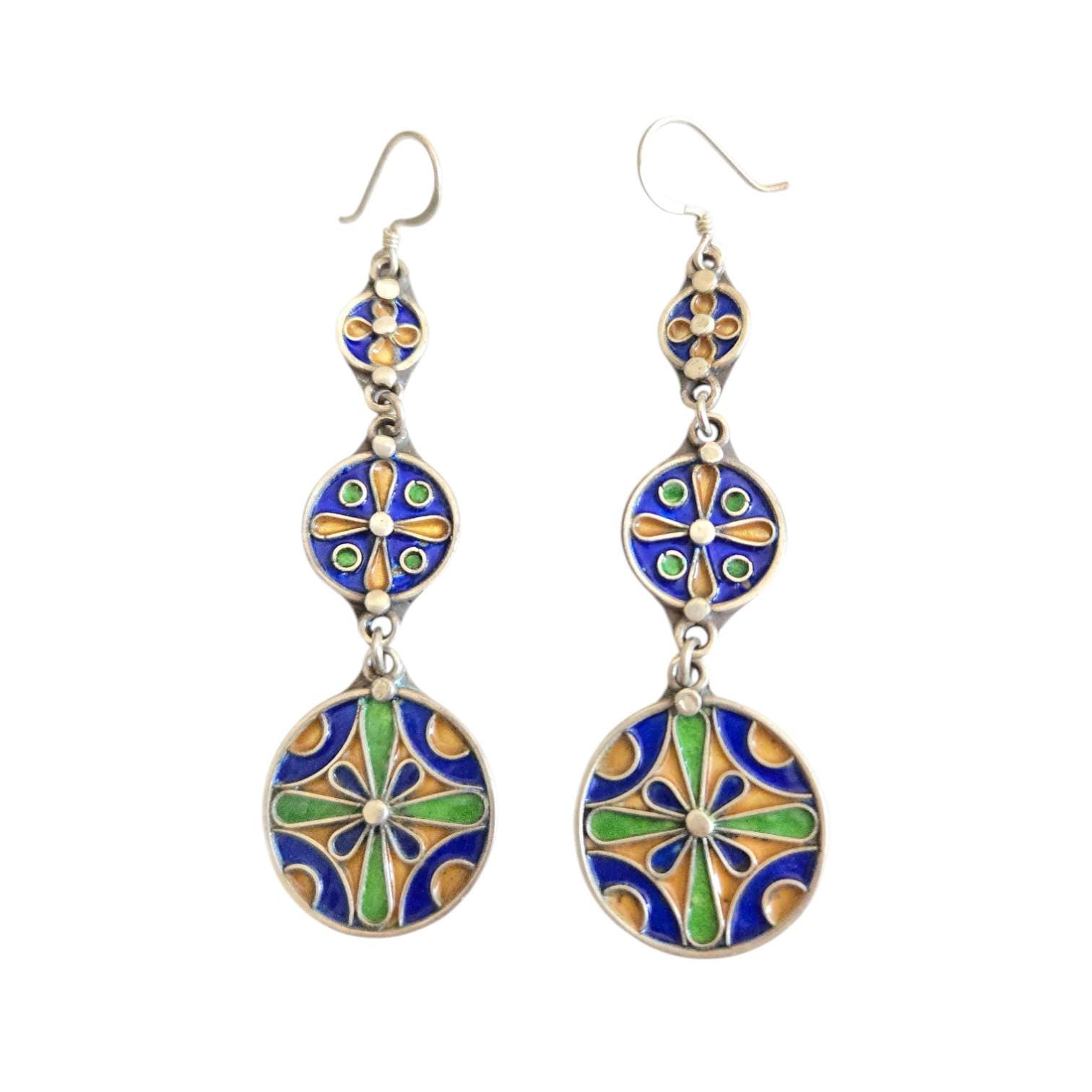 Moroccan Berber Enamel Sterling Silver Dangle Earrings