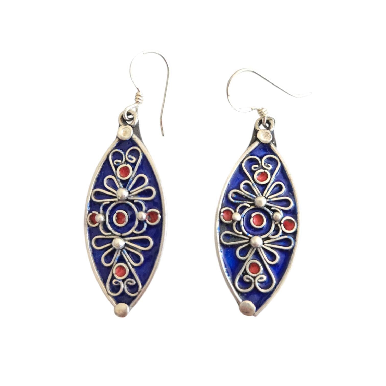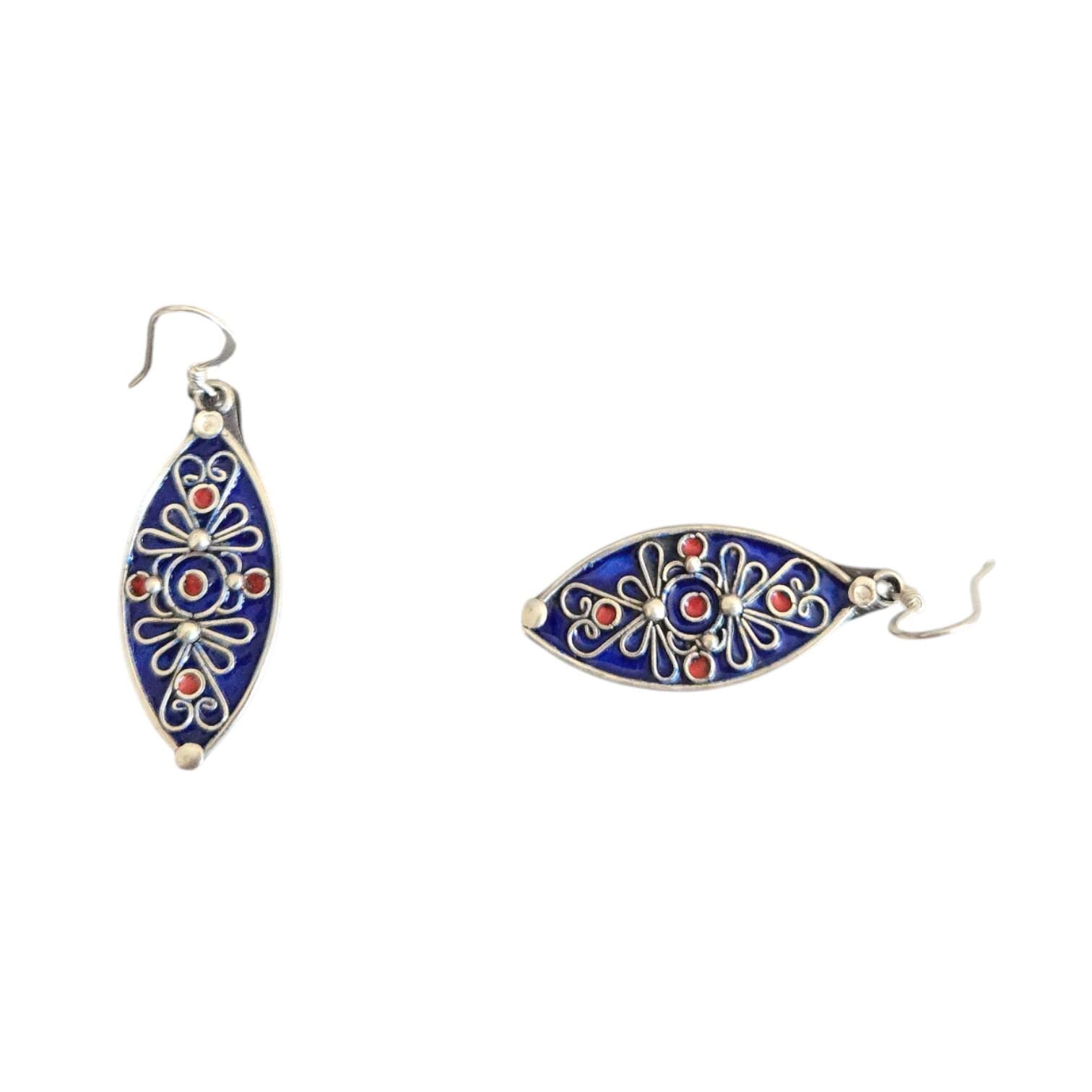 Moroccan Berber Enamel Sterling Silver Dangle Earrings