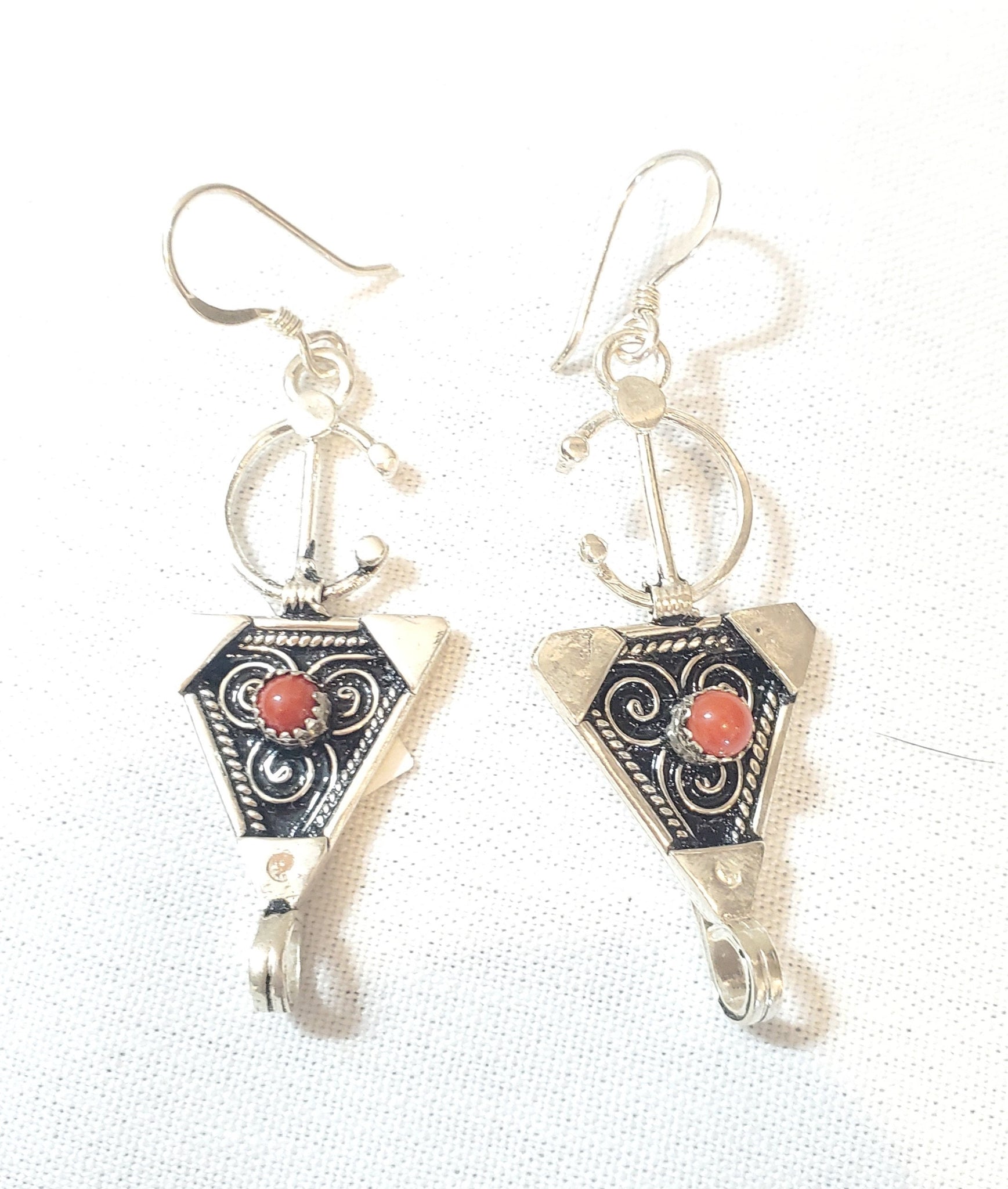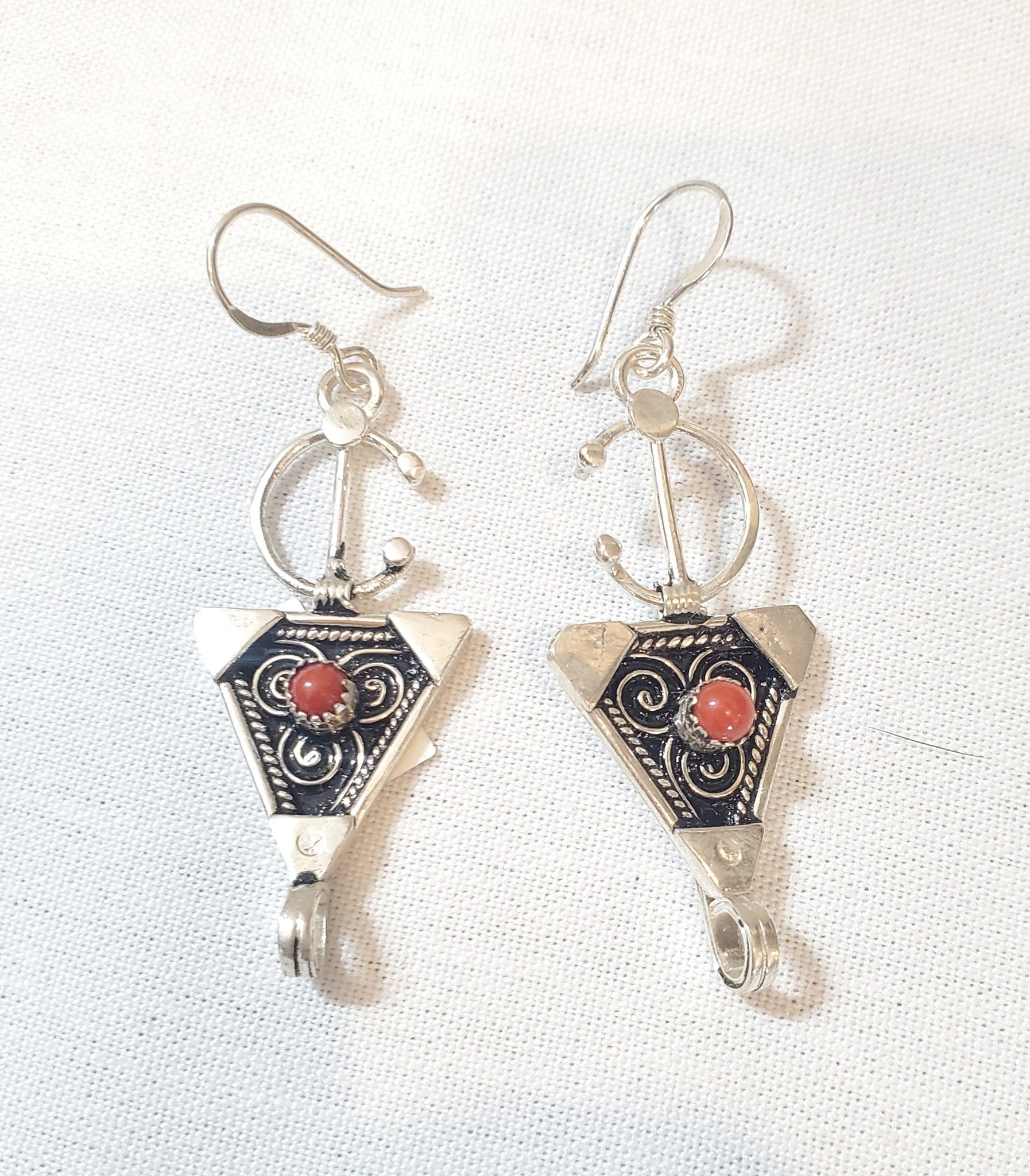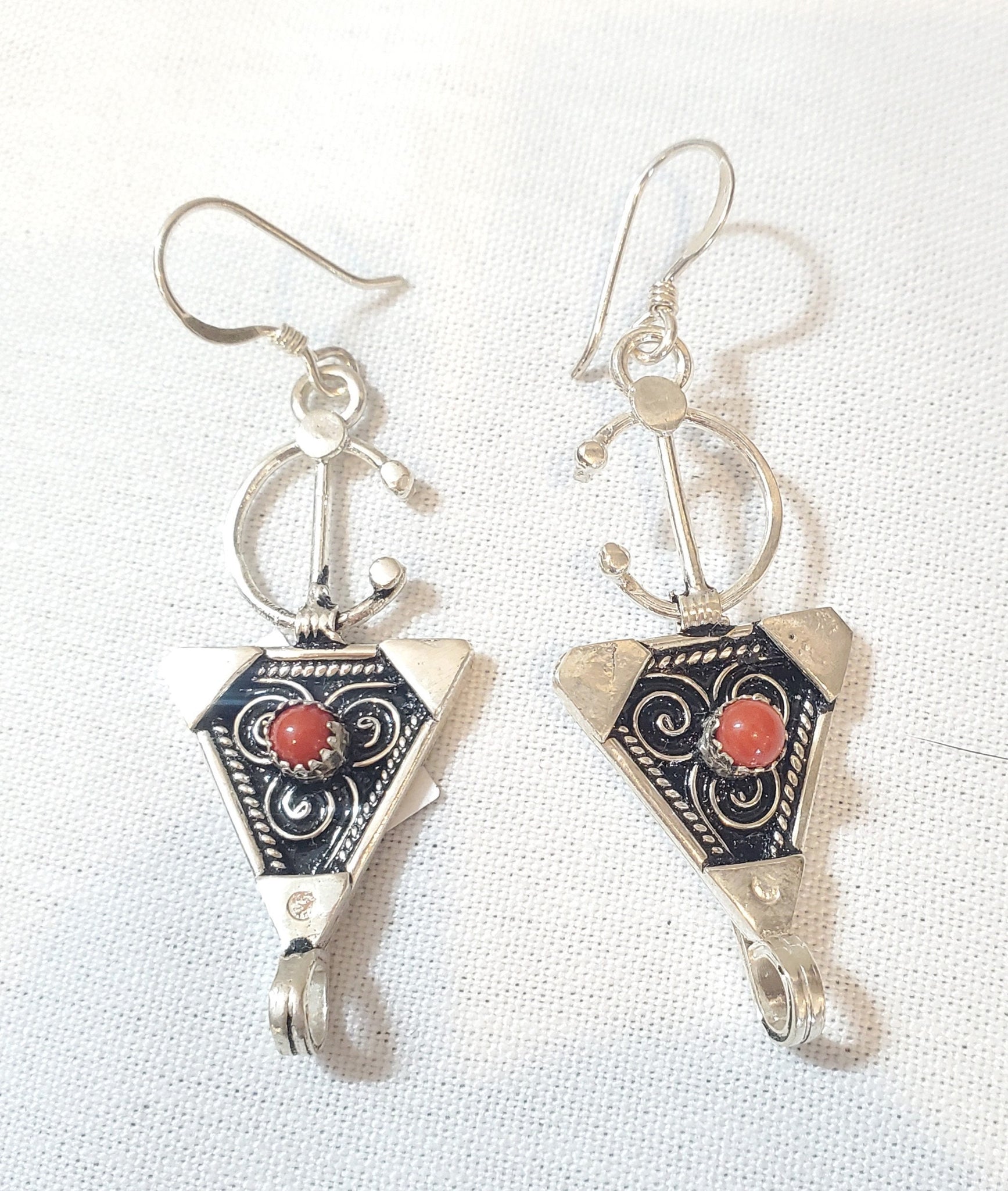 Moroccan Berber Sterling Silver Coral Dangle Earrings