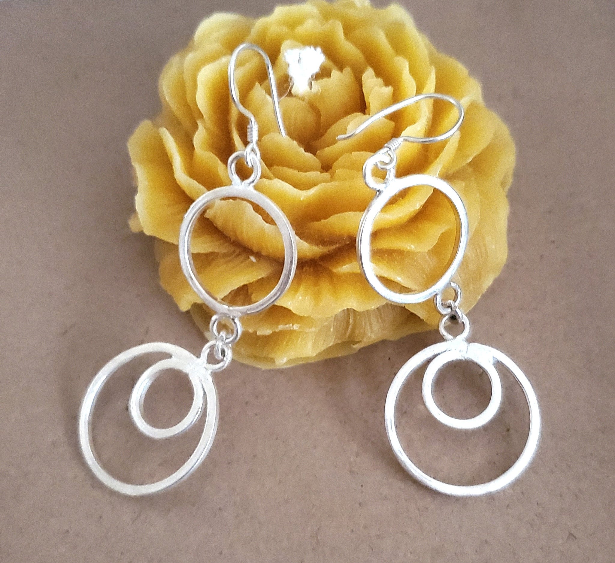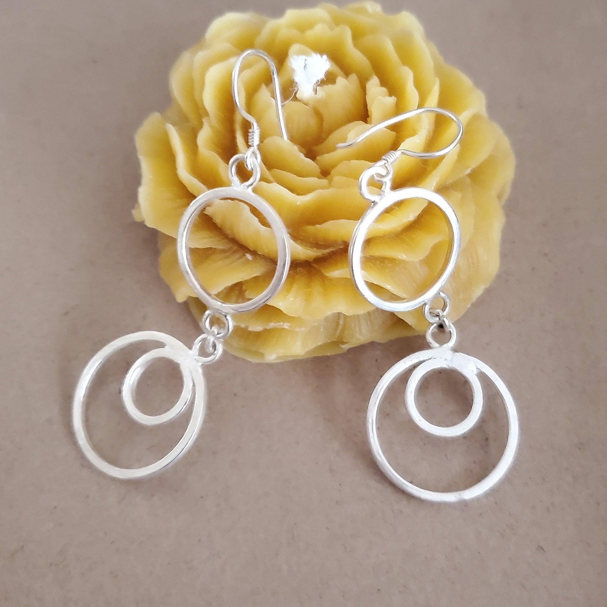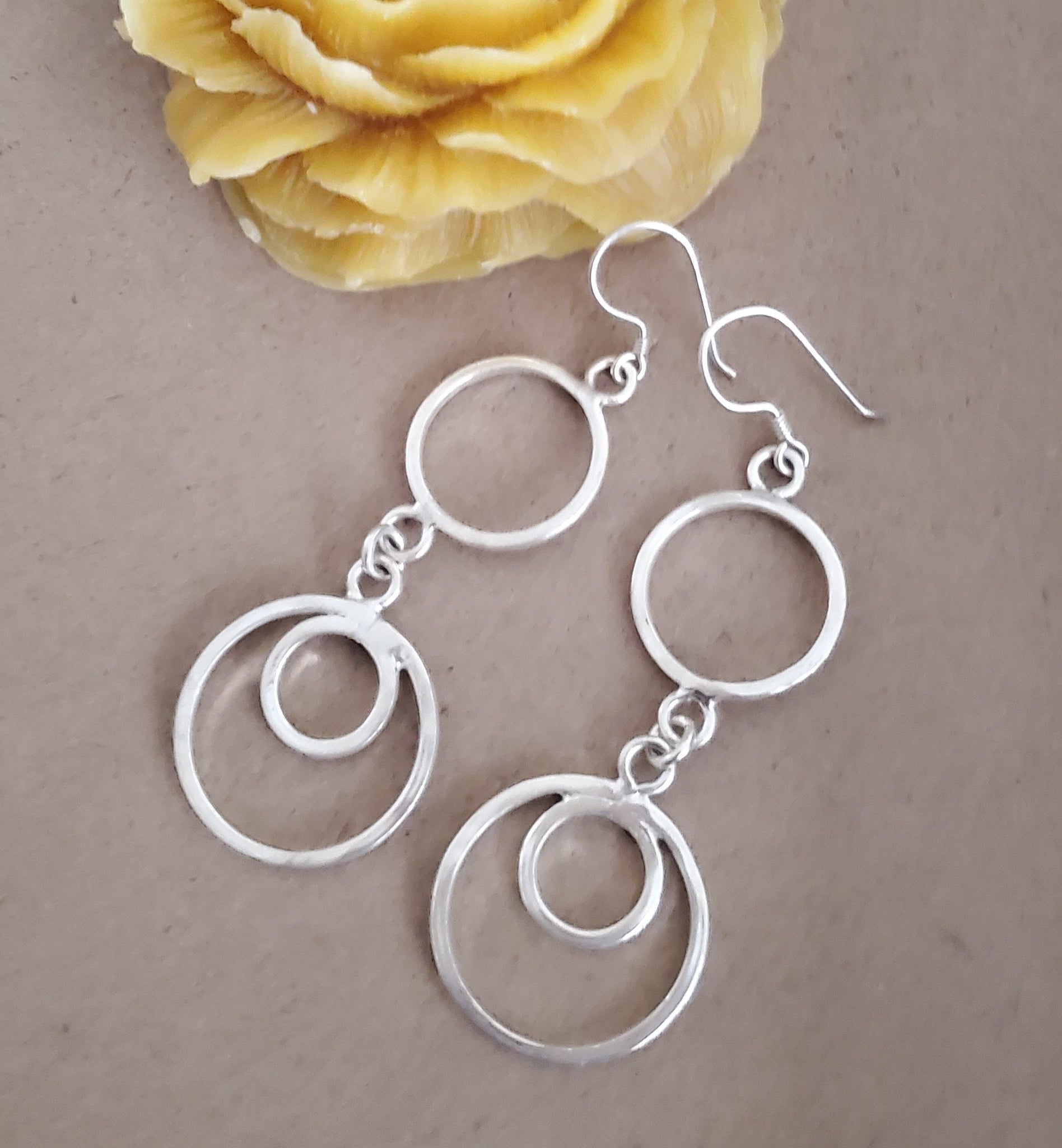 Moroccan Berber Sterling Silver Dangle Earrings: Circle Design
