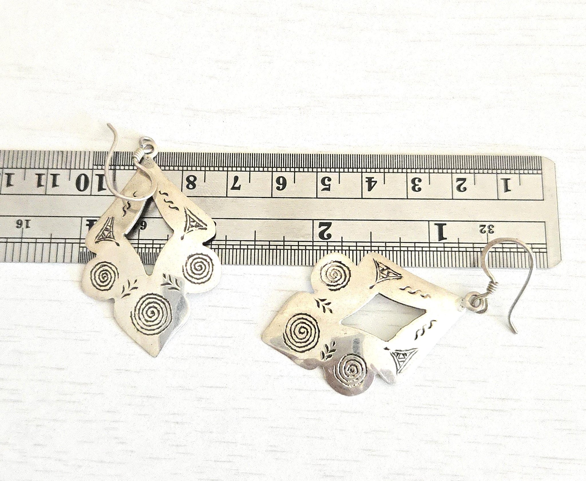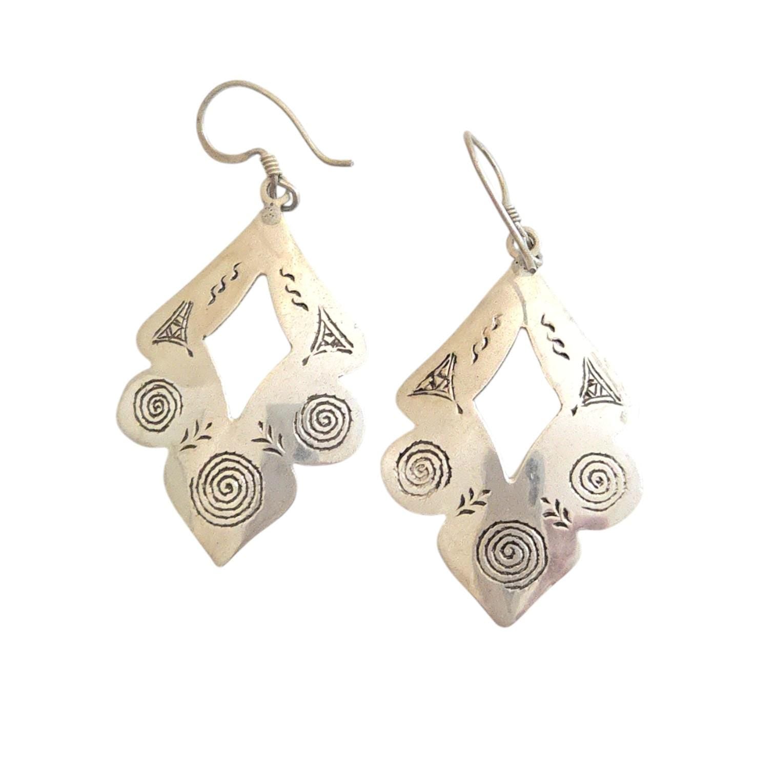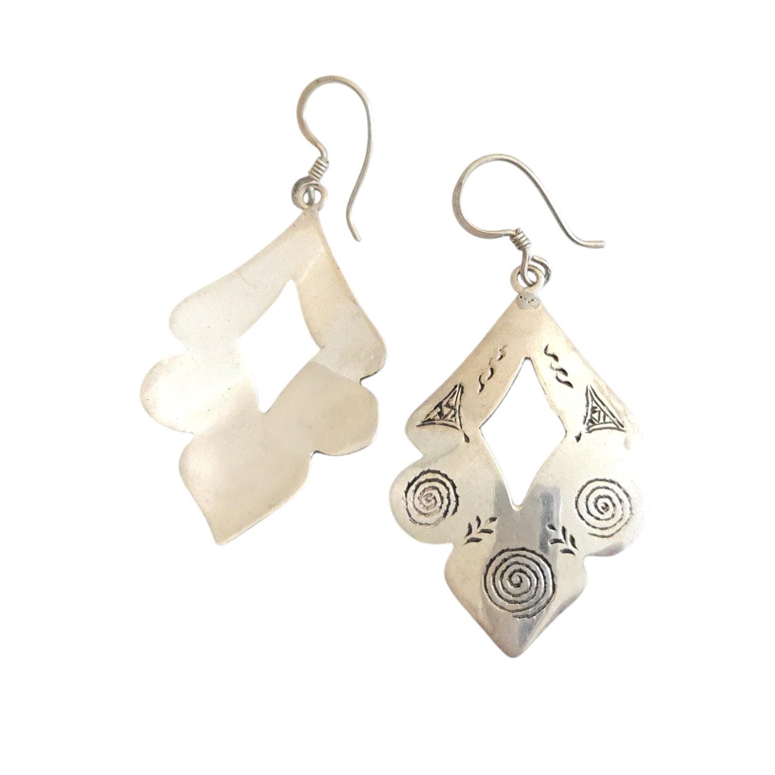 Moroccan Berber Sterling Silver Dangle Filigree Earrings This is a great authentic jewelry from Morocco. Each earring measures just over 2" long and just under 1‘‘ wide./ 12.gr The workmanship is wonderful .These earrings were hand made sterling silver 925 if you have any questions - Feel free to contact me. . Thank you for visiting my shop All my jewelry has been collected over 20 years ago. I will be listing more pieces shortly as I am constantly always working on posting more. piece to add to the collection .I ship all over the world and price includes a tracking service........africanbazaarus.com