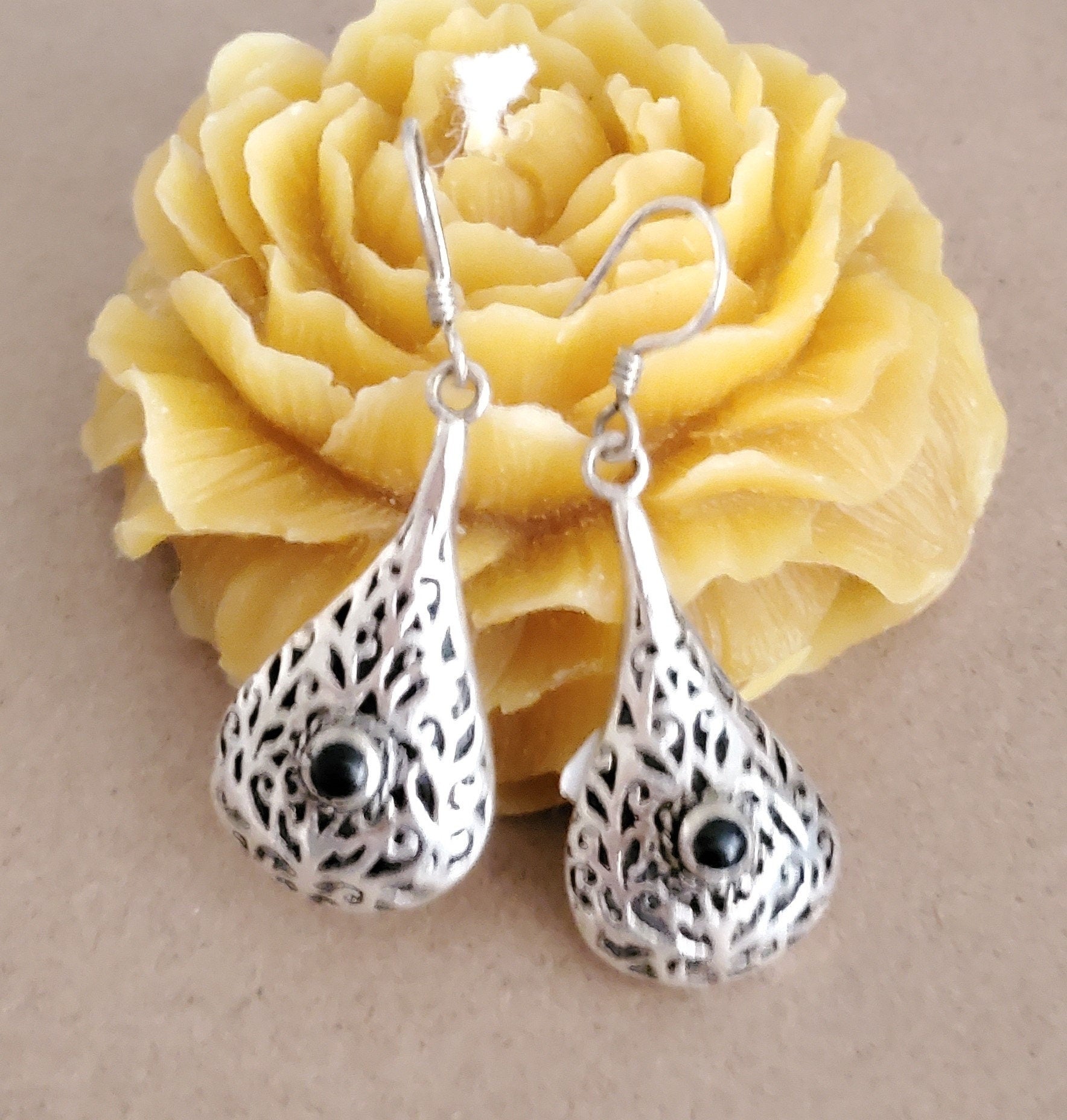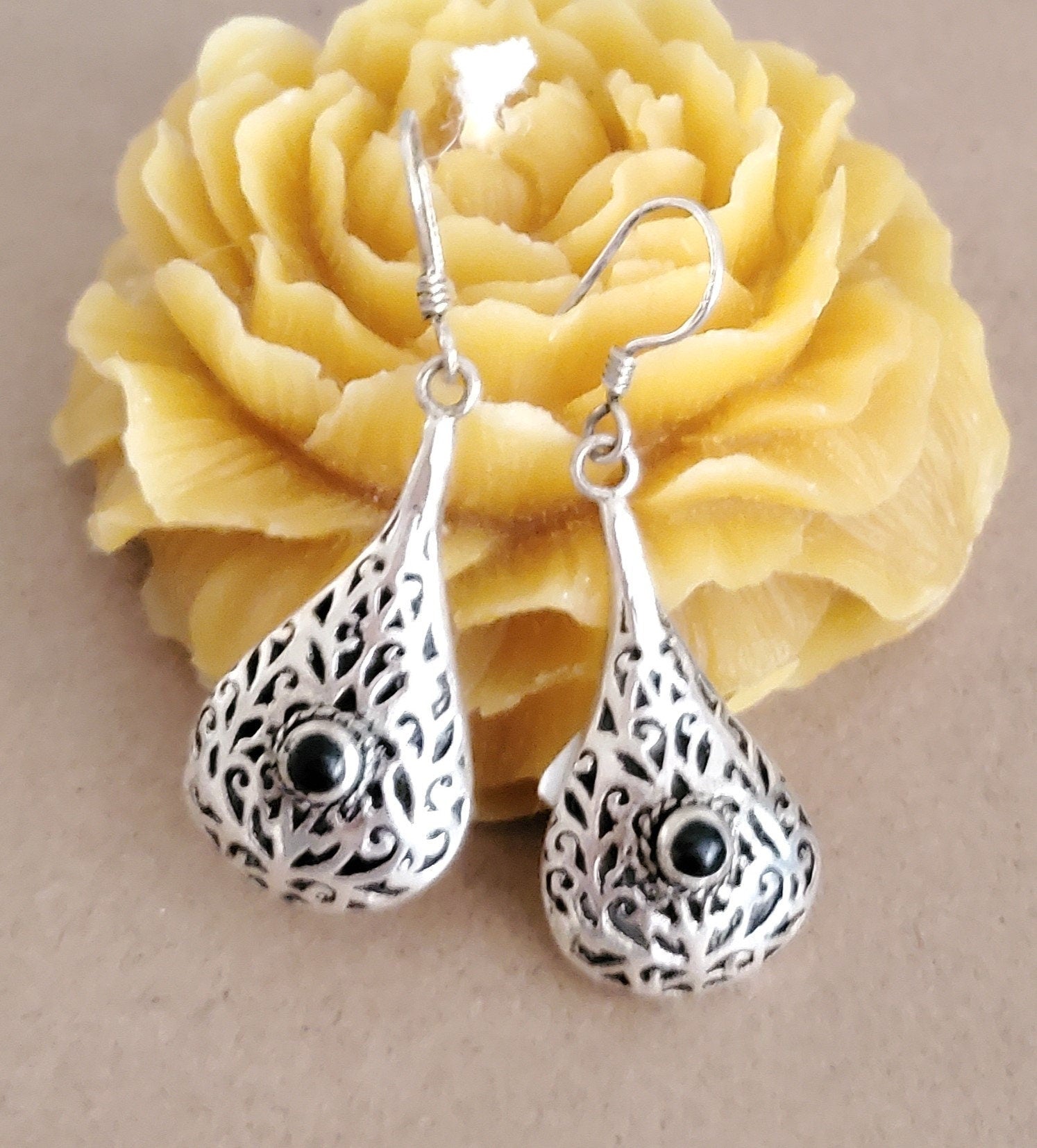 Moroccan Berber Sterling Silver Dangle Earrings: Filigree Design