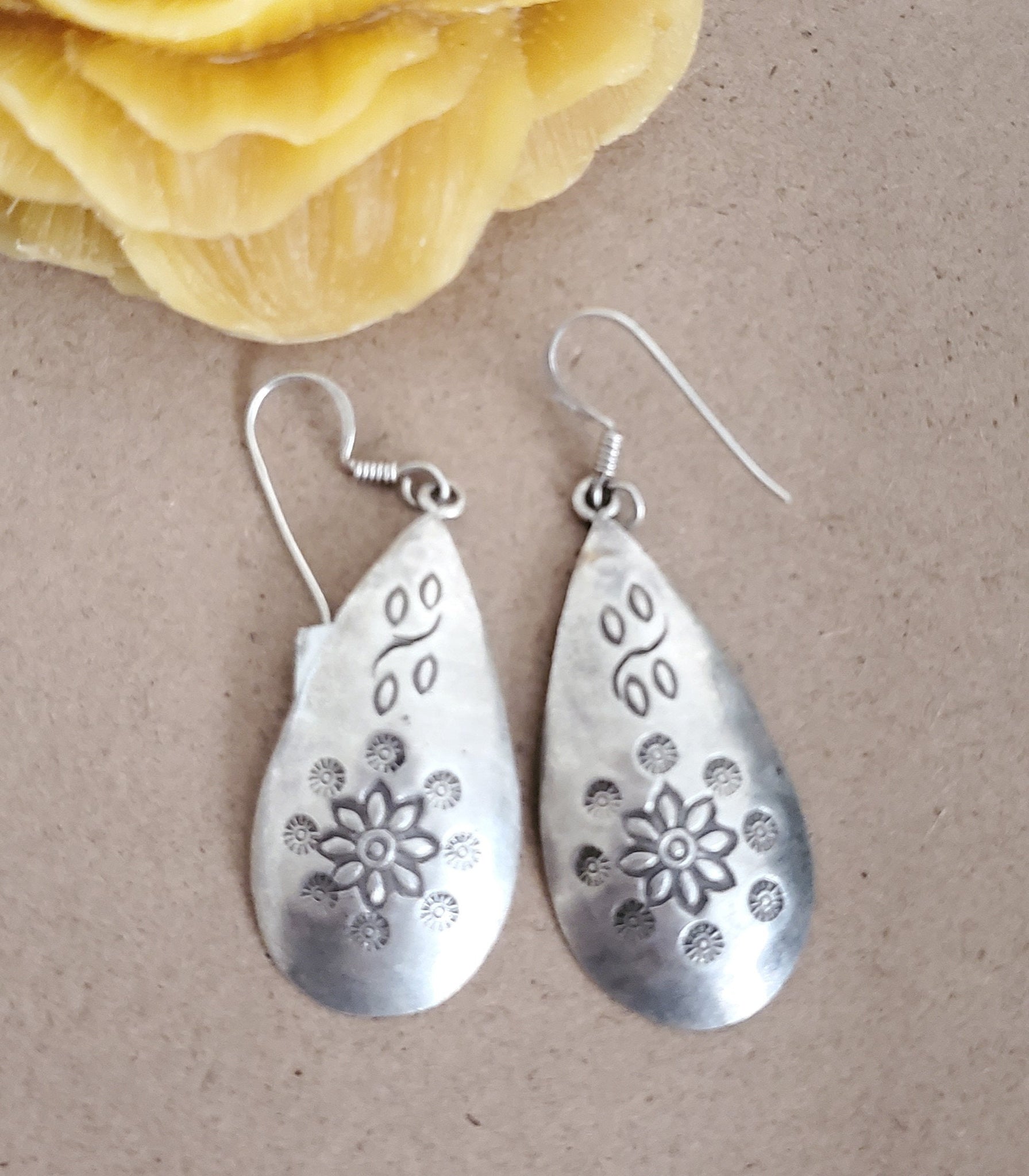 Moroccan Berber Sterling Silver Dangle Earrings: Floral Jewelry