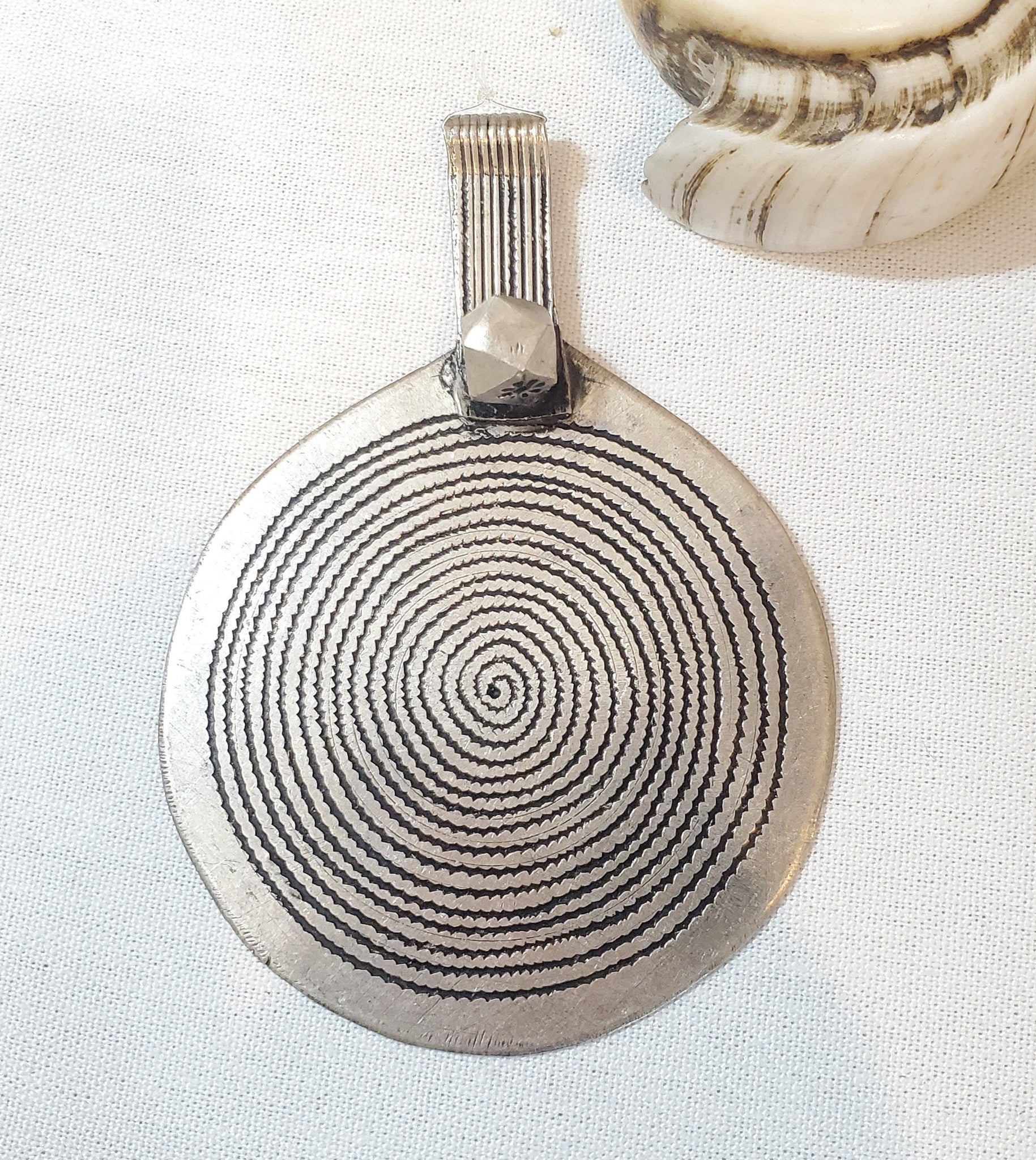 Old Berber Sterling Silver Spiral Pendant: Moroccan Tribal Amulet