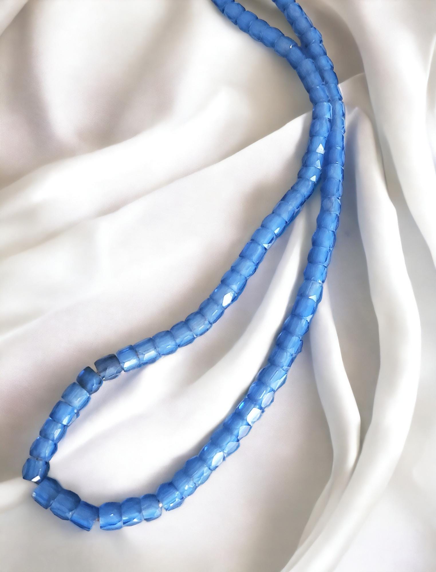 beautiful ancient Antique Bohemian Russian Blues Beads made in the late 19th centuries. RARE set of beads featuring multiple layers of transparent blue glass.