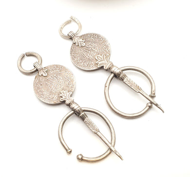 Antique Berber Silver Fibulas: Moroccan Enamel Brooch, Ethnic Jewelry