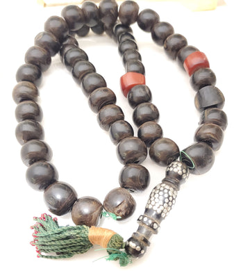 Antique Yemen Black Coral Islamic Prayer Beads: Vintage Collectible