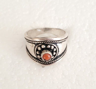 Moroccan Coral Berber Ring: Handmade Sterling Silver Ethnic Jewelry, Size 9.5