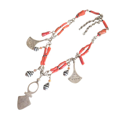 Antique Berber Coral Silver Pendant Necklace: Moroccan Tribal Jewelry