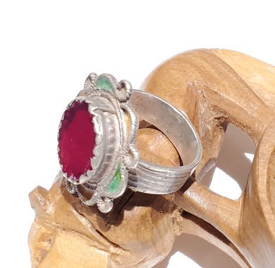Vintage Berber Silver Enamel Talisman Ring: Moroccan Tribal Jewelry, Size 8