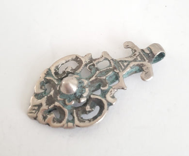 Antique Ethiopian Silver Christian Pendant: Handmade Coptic Cross