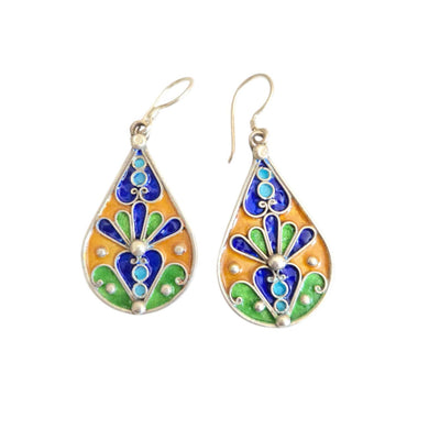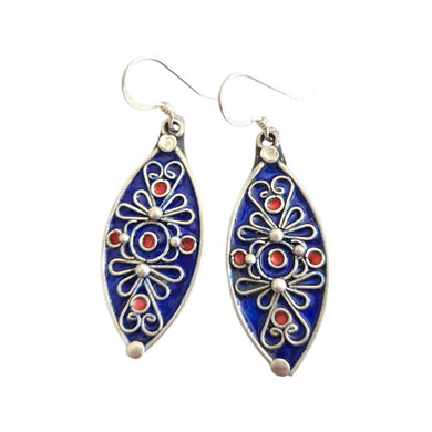 Moroccan Berber Enamel Sterling Silver Dangle Earrings