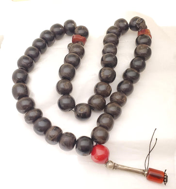 Antique Yemen Black Coral Islamic Prayer Beads, Vintage Collectible