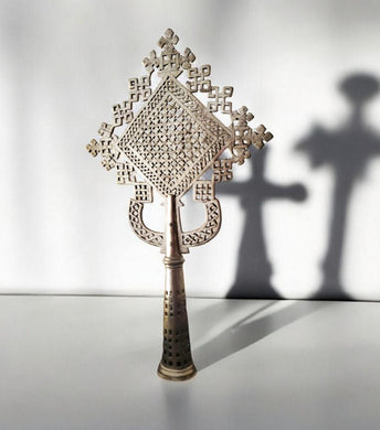 Handmade Ethiopian Orthodox Nickel Cross: Large Coptic Processional Cross