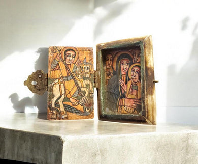 Antique Ethiopian Icon Box: Hand-Painted Coptic Orthodox Art