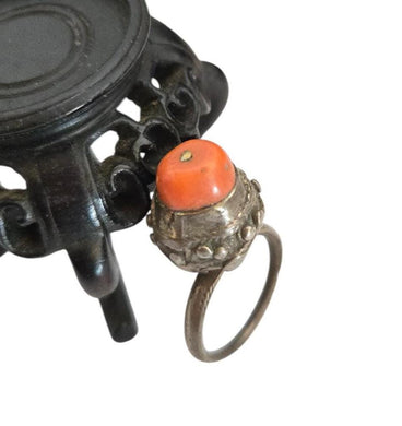 Antique Yemen Silver Coral Ring: Bawsani Tribal Jewelry, Size 7.5