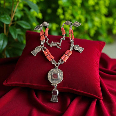 Antique Moroccan Berber Red Coral Silver Pendant necklace Mediterranean,Berber Coral,Ethnic Natural coral,Genuine coral,Coral jewelry