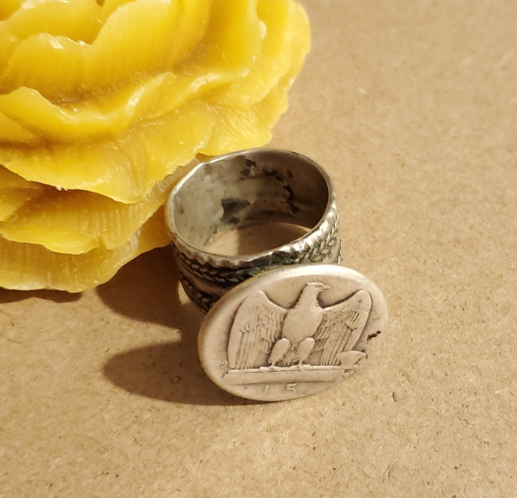 Antique Ethiopian Silver signet Ring Ethiopian vintage silver signet ring. from the Town of Axum monuments ring. 1930s design. Boho jewelry. Good silver content. 13mm in diameter x 11mm thick x 4mm inner diameter. Silver-Ethiopian-signet RING- size 7.5 Collectible weight : 10 gr-Ethiopian-Wedding Ring Collectible other shop .....africanbazaarus.com